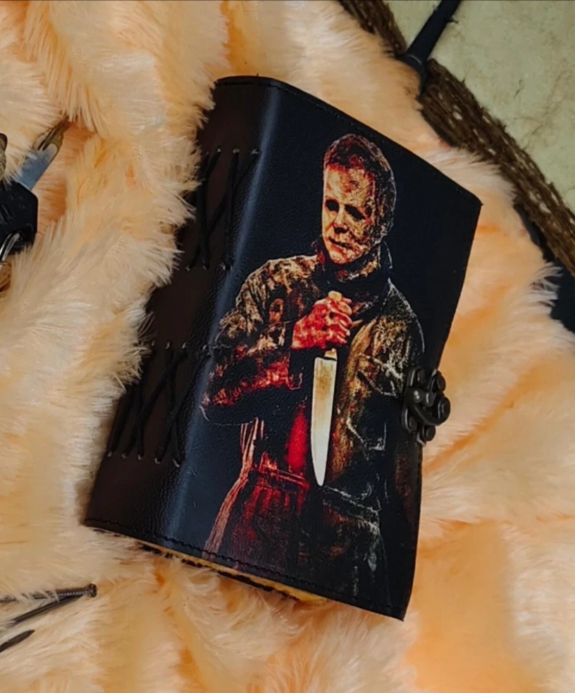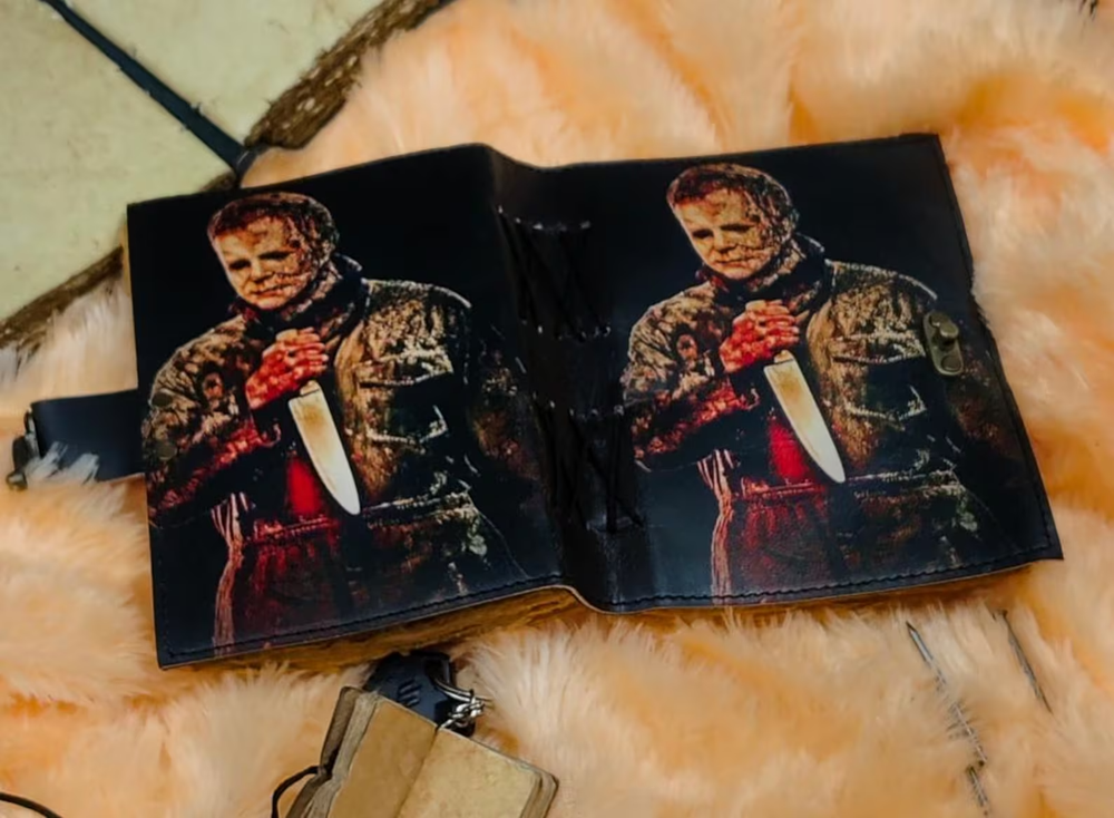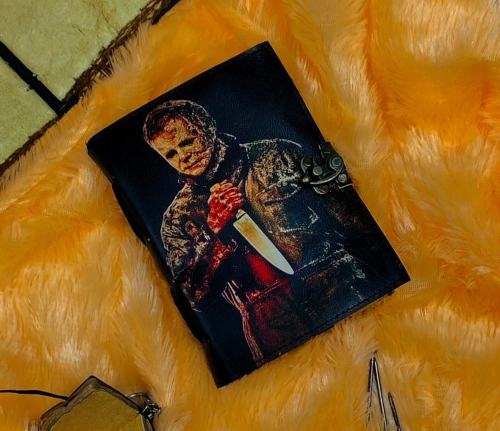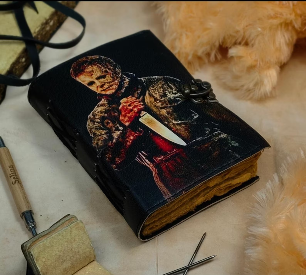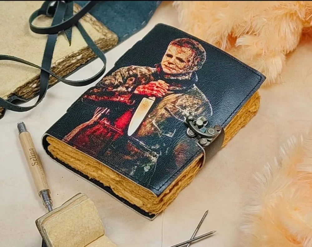 This Halloween-themed printed handmade leather notebook is a luxurious and limited edition item perfect for gifting. The notebook features a leather cover and can be personalized, making it a unique and special present for any occasion. Handmade in India, this notebook combines high-quality materials with unique designs to create a special book of shadows or diary for any individual looking for a one-of-a-kind writing instrument. Halloween gifts STYLISHLY MEDIEVAL HANDMADE VINTAGE PAPER - Ancient looking rustic cotton paper combined with the beauty of distressed leather, hand-stitched by Artisans, creates a keepsake you will cherish forever. Makes a great gift for the men, women, and Wiccans in your life! MICHAEL MYERS LEATHER PRINTED DESIGN - Perfectly print with the Michael Myers designs, this journal makes a thoughtful gift to anyone of different cultures. IMMACULATE CRAFTMANSHIP - These journals are built from 200 pages of excellent quality handmade vintage papers with 150 GSM thick, and rich, durable handcrafted genuine brown leather covers. Guaranteed no bleed-through with ball point or gel pens. STRONG, STURDY BINDING & SMALL BRASS C-LOCK- Great quality journals always start with their binding. For the Vintage Leather Sun & Moon print Journal, the binding is stitched by sturdy hands to make sure that the papers are safe and secure. Many Uses - Can be used as a notepad, journal, writing notebook, sketch book. 1.25 inch thickness, easy for handwriting, drawing or sketching and compact for carrying in your bag. Ideal for alternative Artist Sketchbooks, Photo Album, Traveling Notes, Business Executive, Logbook, Poetry Work, Journalists, Food Planner, Instagram Scrapbook and Bible Journaling. This Journal Is Made From A High Quality Leatherette With A triple moon printed Finish And Vintage Looking Paper ★ DIMENSIONS :- The Journal Is Available In 3 Perfect Sizes. 13 inches" x 10 Inches. 10 Inches" x 7 Inches. 8 Inches" x 6 Inches. 7 Inches" x 5 Inches. ★ PAPER :-The Inside Of This Journal Is Handmade Decal Edge Paper That Looks Vintage And Well Stitched Whose Number Is 200 (Please Count Both side) If You Want White Plain Paper So Please Select Right Paper Option There Are Two Options Available. ★ HANDCRAFTED FROM GENUINE LEATHER: Each Journal Is Specially Designed And Handmade From Premium Leather. Artful Hand Stitching To Create A Timeless Space For Your Thoughts. ★ TELL YOUR STORY :- We Designed This Classic Leather Journal As A Time Capsule For Your Thoughts. Capture Your Important Memories, Accomplishments (And Failures), Life-Changing Moments And Evolving Dreams As A Keepsake To Reflect Upon In Years To Come. ★ THE PERFECT GIFT :-Quality You Can Trust: High-Quality Craftsmanship Makes This An Essential Tool For Poetry, Art, Sketching, Writing, Drawing, Calligraphy Leather Journal Give Your Loved Ones A Thoughtful Gift That Will Last For Years To Come! Great For A Birthday, Anniversary, Or Graduation. Ignore :- Travel journal Antique journal Handmade leather journal Sun and moon Leather journal michael myres celestial embossed Book of shadows Grimoire journal Sun and moon journal Blank spell book Magic moon Ying yang celestial sun and moon Celestial journal Journal for women Magic book Triple Moon Live by the sun Love by moon Book of shadows Blank spell book Witches journal MICHAEL MYERS halloween gifts halloween journal halloween movie conten halloween resurrection Halloween the curse of Michael myers best for halloween gifts speell book halloween decoration witch decor michael myers hocas pocus hocus pocus replica halloween props Blank spell book halloween gifts michael myers spell book witch decor book of spells Halloween thaem printed handmade leather note book Book of shadows Michael myers