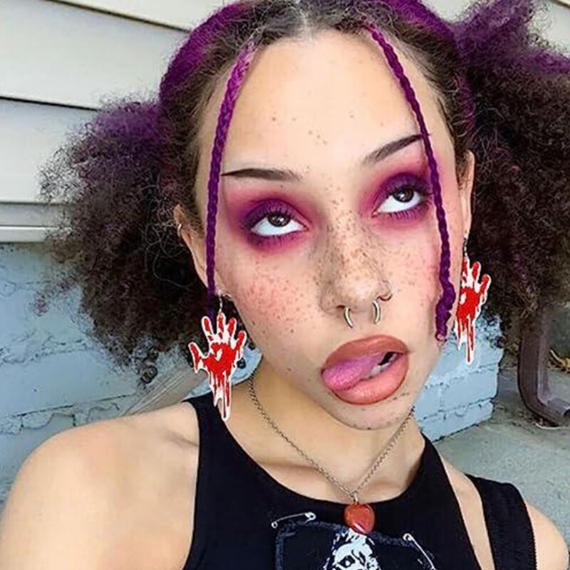 Features: Stand out this Halloween with these terrifying bloodstain earrings, for adding a touch of horror to your costume. Made from acrylic, these Halloween earrings are lightweight and comfortable to wear, ensuring you can enjoy the festivities all night long. Designed for both men and women, these versatile earrings are suitable for anyone looking to make a statement during the Halloween season. Whether you're attending a haunted house party or trick or treating with friend, these bloodstain earrings will your spooky look and impress everyone around you. the of Halloween with these bloodstain earrings, and let your creativity as you transform into a truly terrifying character. Specifications: Acrylic Length: Approx. 2.36-2.76inch(6-7cm) Package Includes: 1 Pair Halloween Earrings note: Please allow 1-2cm errors due to manual measurement. Due to the difference between different monitors, the picture may not reflect the actual color of the item.