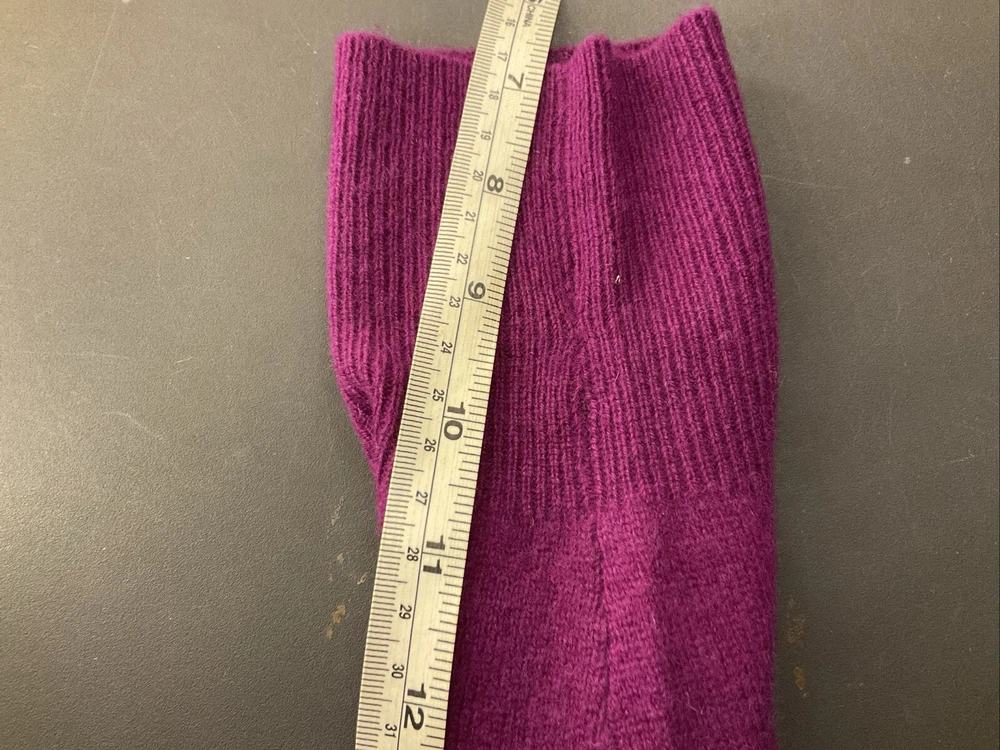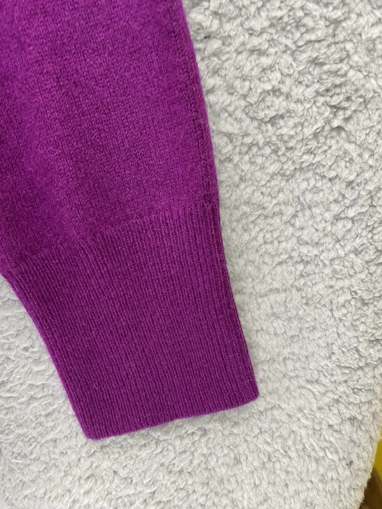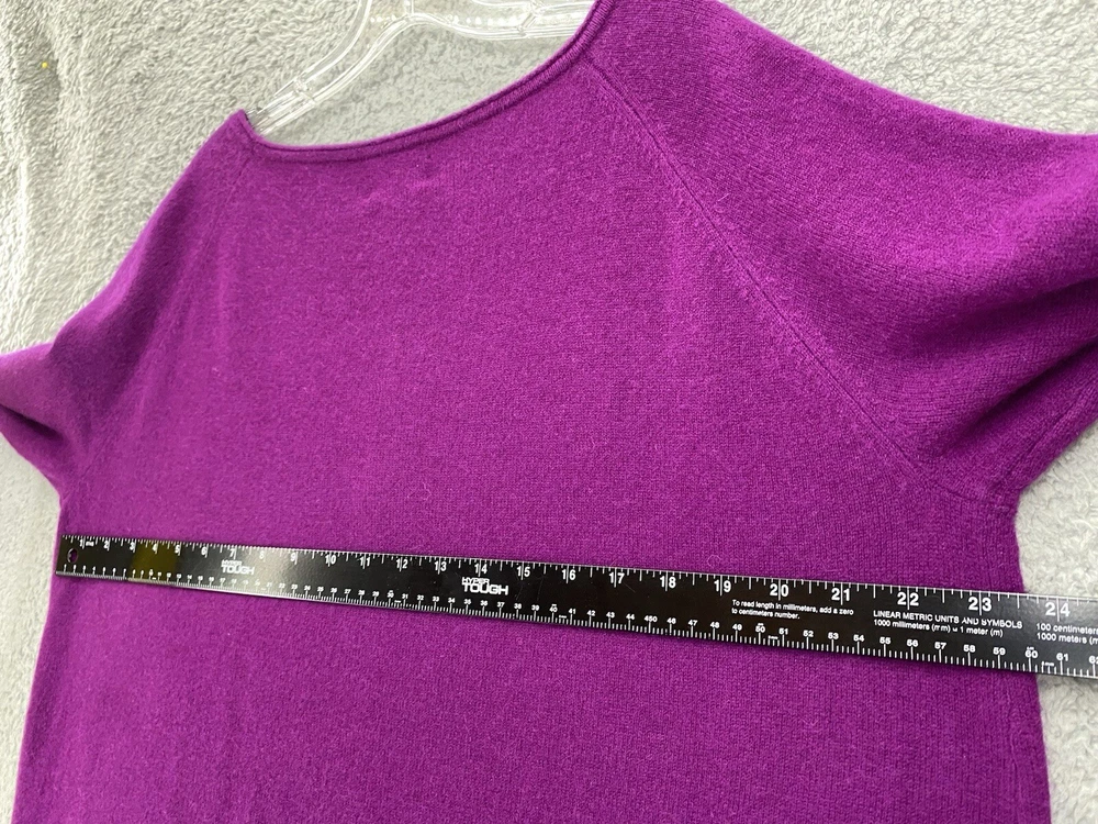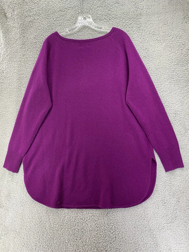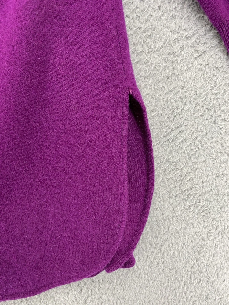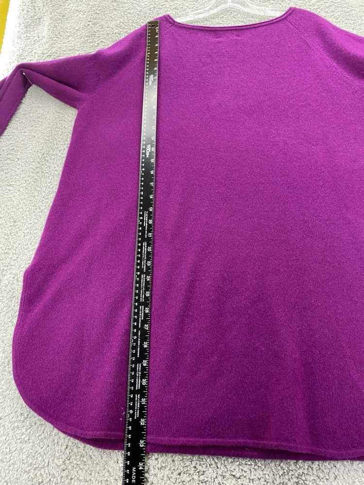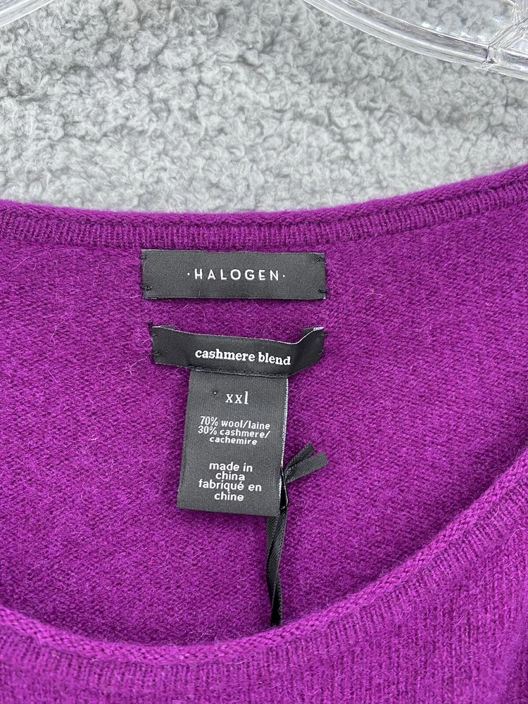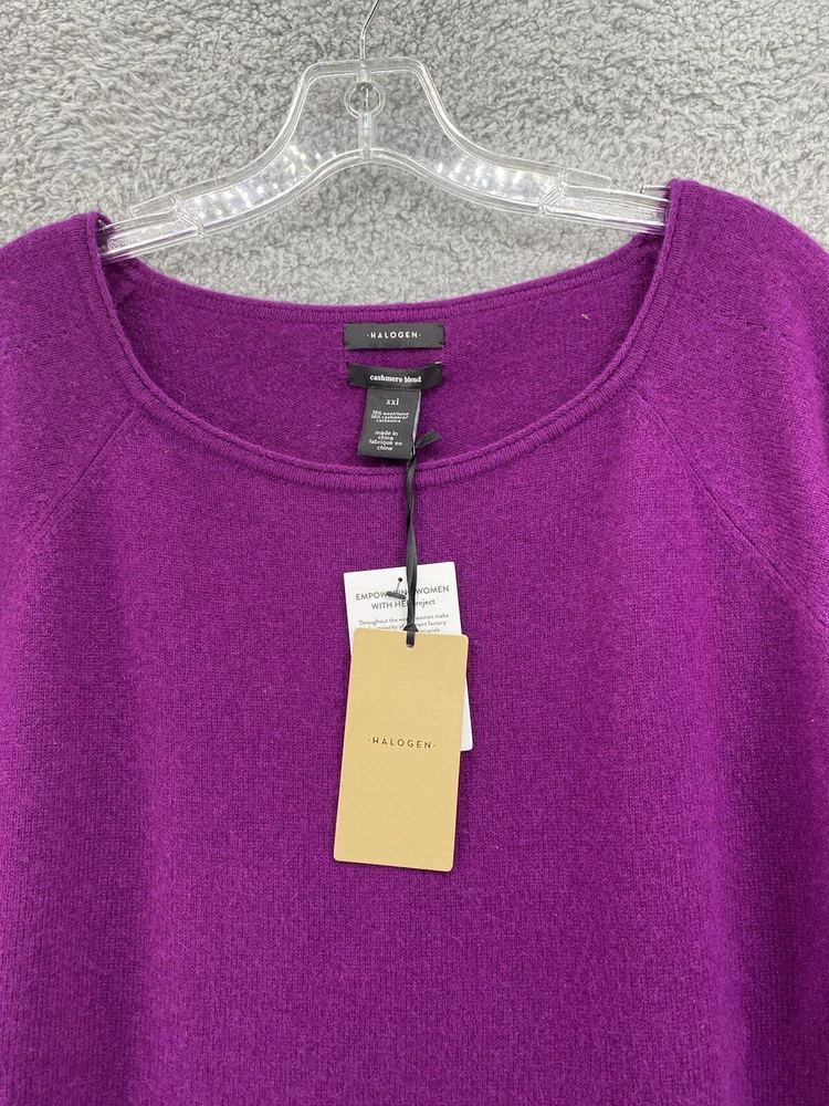 Elevate your wardrobe with this stunning Halogen sweater. The eggplant purple color and classic design make it a versatile piece for any occasion, whether it's a casual day out or a business meeting. The tight-knit cashmere and wool blend fabric is both lightweight and breathable, ensuring a comfortable fit all day long. Featuring raglan sleeves, a round neckline, and a collarless style, this sweater is perfect for those who want a stylish yet relaxed look. The sweater is also stretchy, making it easy to move around in. With its solid pattern and stretchy fabric, this sweater is a must-have for any fashion-conscious woman. * flaw mended seam on one sleeve,see picture.
