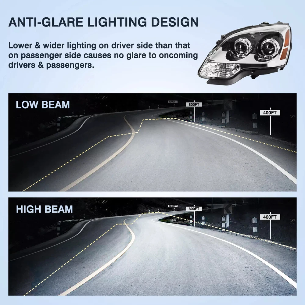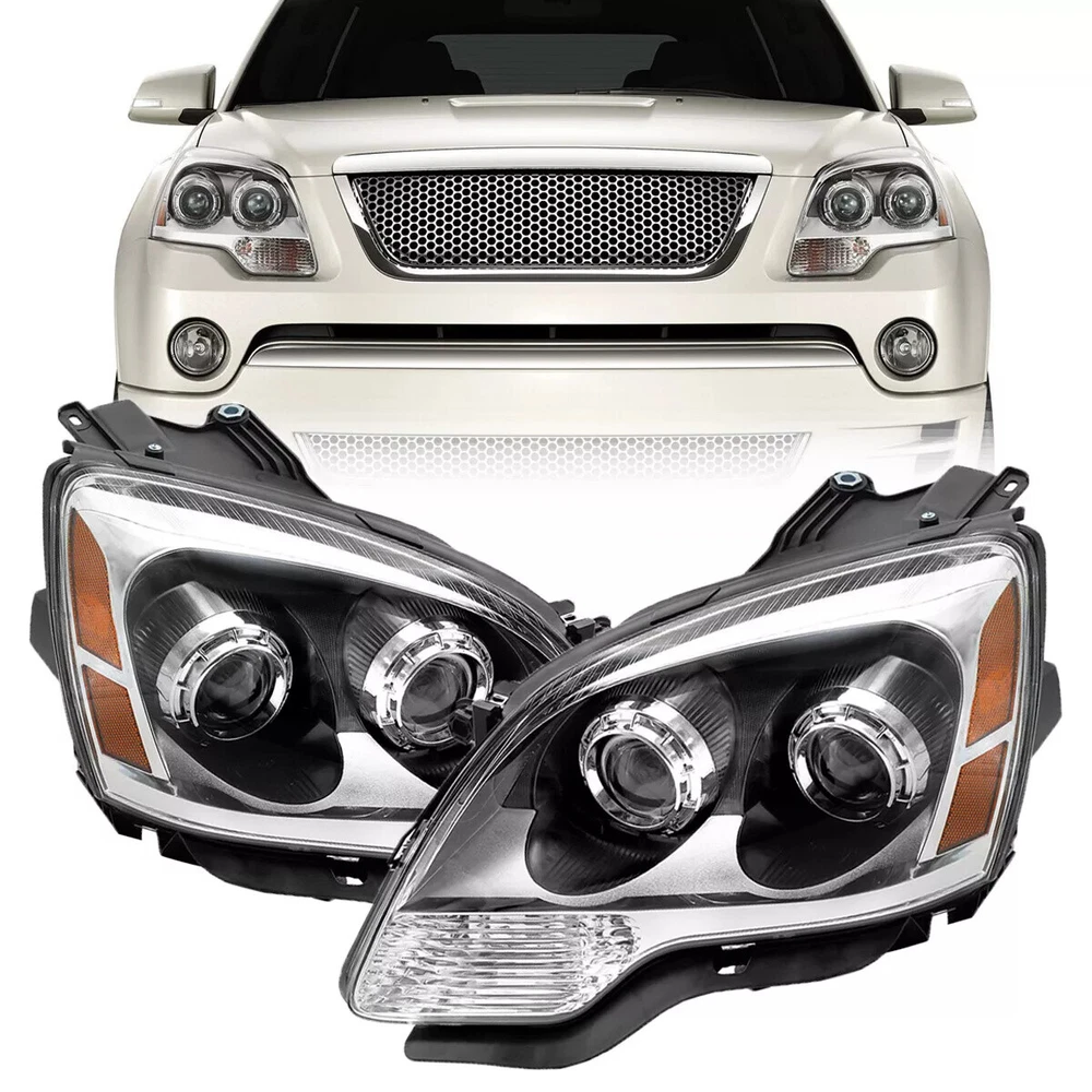 Specification Condition:New Lens Color:Clear Housing Color:Chrome Fitment Type: Direct Replacement Placement on Vehicle:Front, Left,Right Features: Waterproof Lighting Technology: Halogen Function: High Beam, Low Beam, Turn Signal Light, Reflector Bulbs Included : NO Bulb Type:High Beam:H7/ Low Beam:H7 Application 2011-2012 GMC Acadia Denali with Halogen Headlights 2010-2012 GMC Acadia SLT with Halogen Headlights 2010-2012 GMC Acadia SLE with Halogen Headlights 2010-2012 GMC Acadia SL with Halogen Headlights 2008-2009 GMC Acadia SLT with Clear Lens with Halogen Headlights 2008-2009 GMC Acadia SLE with Clear Lens with Halogen Headlights Package Include 1 × Left Side Headlight 1 × Right Side Headlight