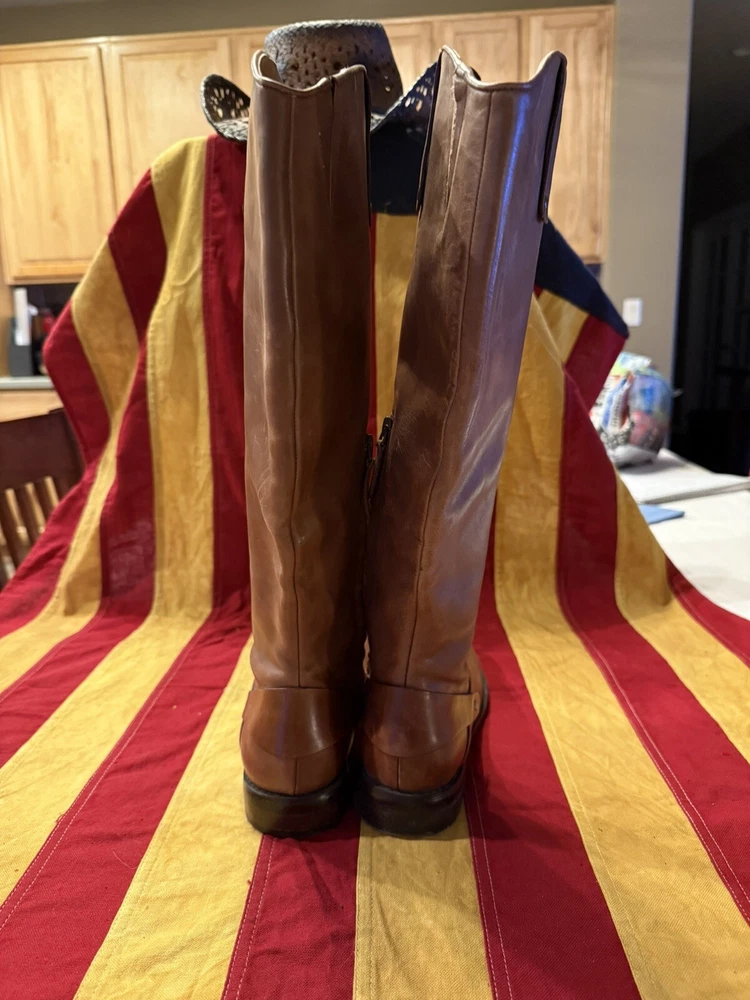 ONLY WORN ONCE Halogen Keri Tall Riding Boots in size 7.5M Versatile and stylish boots suitable for casual, workwear, and business occasions. These knee-high boots feature a round toe shape, a low block heel, and a 1-inch platform height, providing both comfort and style. Made of brown leather, these riding boots have a zip closure for easy wear and a solid pattern that complements the equestrian, cowboy, Southwestern, and cowgirl themes. Perfect for all seasons, these Halogen boots are a chic addition to any wardrobe. ID H7.5Brown1