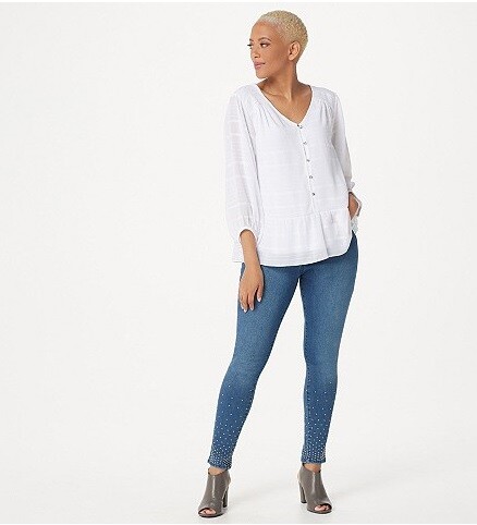 H Halston Premier Denim Studded Ankle Jeans New Medium Indigo Blue Description H by Halston Stud details qualify these ankle jeans for front-row placement in your go-to bottom lineup. From H by Halston. The features are: Brand new Hardware: zip-front closure with signature button, stud detail Features: ankle length, two pockets with coin pocket, two back patch pockets Rise: slightly below the waist Fit: fitted; cut to follow the lines of the body Leg Shape: slim leg; fits close to the body through the entire leg Inseam: missy/plus inseam 28" Content: 62% cotton/33% polyester/3% other fiber/2% elastane Care: machine wash, tumble dry Be sure to check out my Ebay Store. Enjoy! Payment, Shipping & Return Information U.S. Buyers to pay shipping and handling of 0 for 1st item. For each additional item add 0 . For shipping discount to apply, all items need to paid in one combined payment. Missouri Residents to pay Sales Tax Items may returned in original condition for a refund of the purchase price. Shipping costs will not be refunded, unless an error was made by us. International Shipping rates: Canada via 1st class international: 16.95 Worldwide via 1st class international: 21.95 For Multiple item shipping discounts, Priority Mail or Express Mail International please contact me for a shipping Quote International Buyers - Please note: Import duties, taxes and charges are not included in the item price or shipping charges. These charges are the buyer's responsibility. Please check with your country's customs office to determine what these additional costs will be prior to bidding/buying. Due to the USPS raising international shipping costs, I may have to package without the shoeboxes for some International Shipments. We accept Paypal. Thanks for Looking.