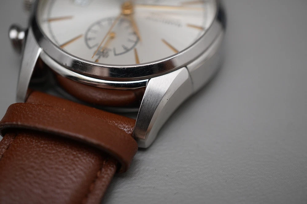For sale is a Hamilton American Classic H32416581 Spirit Of Liberty Automatic Chronograph Watch Movement: Mechanical (Automatic) Condition: Used Strap: Aftermarket leather. Original leather/deployant clasp are included but is deteriorating from age/wear. Box: Original, some deterioration inside from age. Warranty card: Stamped 2014.7.5 Manual: Yes Approximate measurements: Case diameter: 42mm (excluding crown) Lug width: 22mm Lug to lug: 52mm Thickness: 14.75mm Please inspect all product photos in detail prior to purchase. Item does not include accessories beyond what is described and photographed.