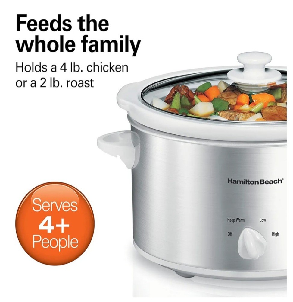Hamilton Beach 4-Quart Slow Cooker with 3 Cooking Settings, Dishwasher-Safe Stoneware Crock & Glass Lid, Stainless Steel (33140G) BRAND NEW