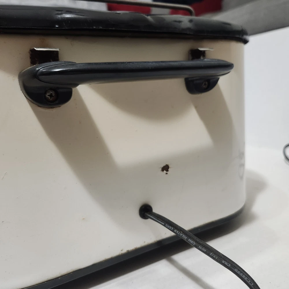 These are the replacement handles that came from a Hamilton Beach Automatic Roaster Oven Model 527. There is damage and lots of wear to the item. Last 4 pictures show the roaster oven the item came from.