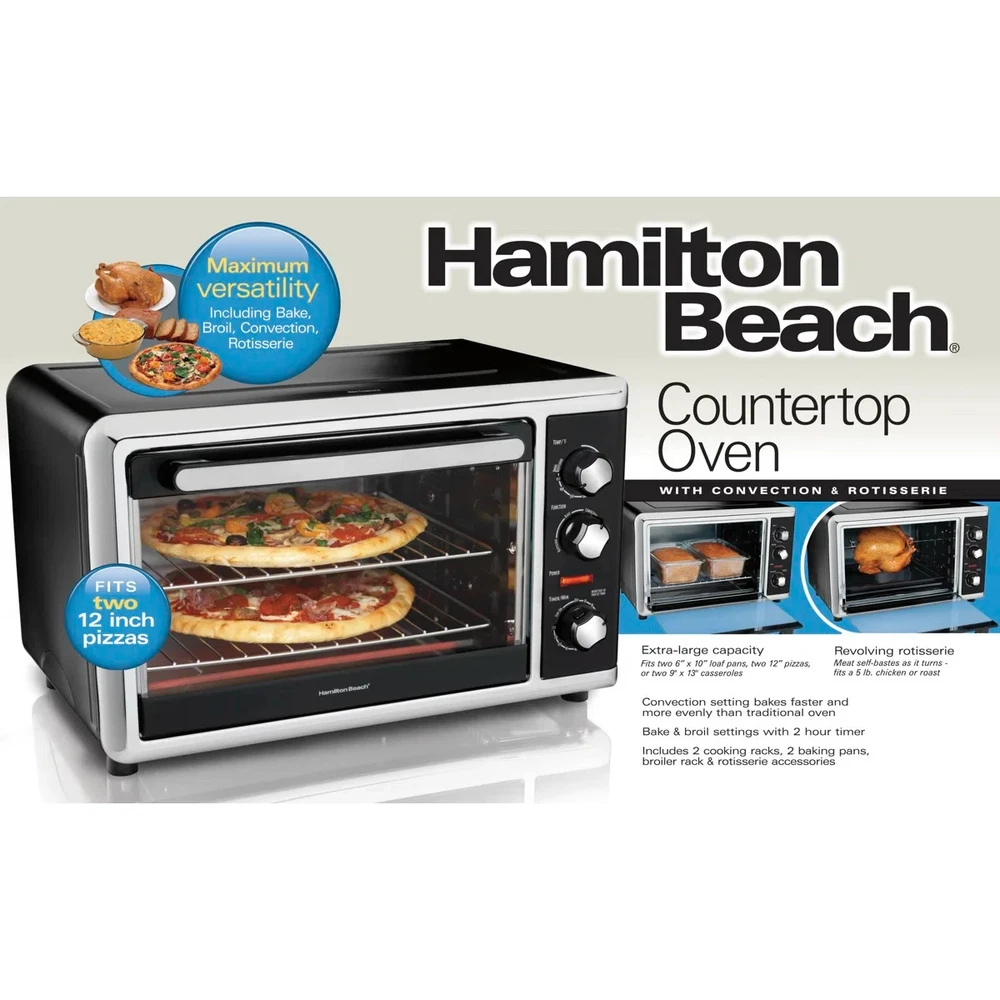 Hamilton Beach Convection Countertop Oven with Rotisserie in Silver Black - New Model