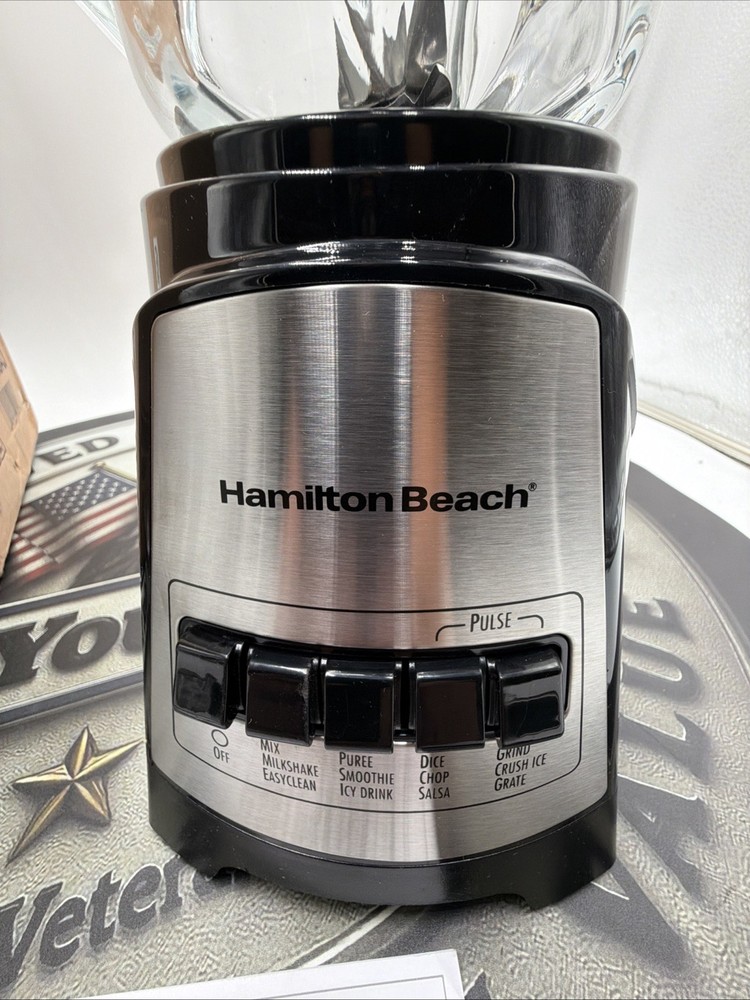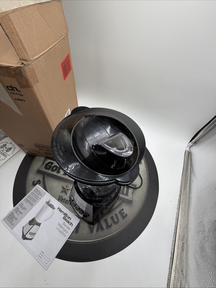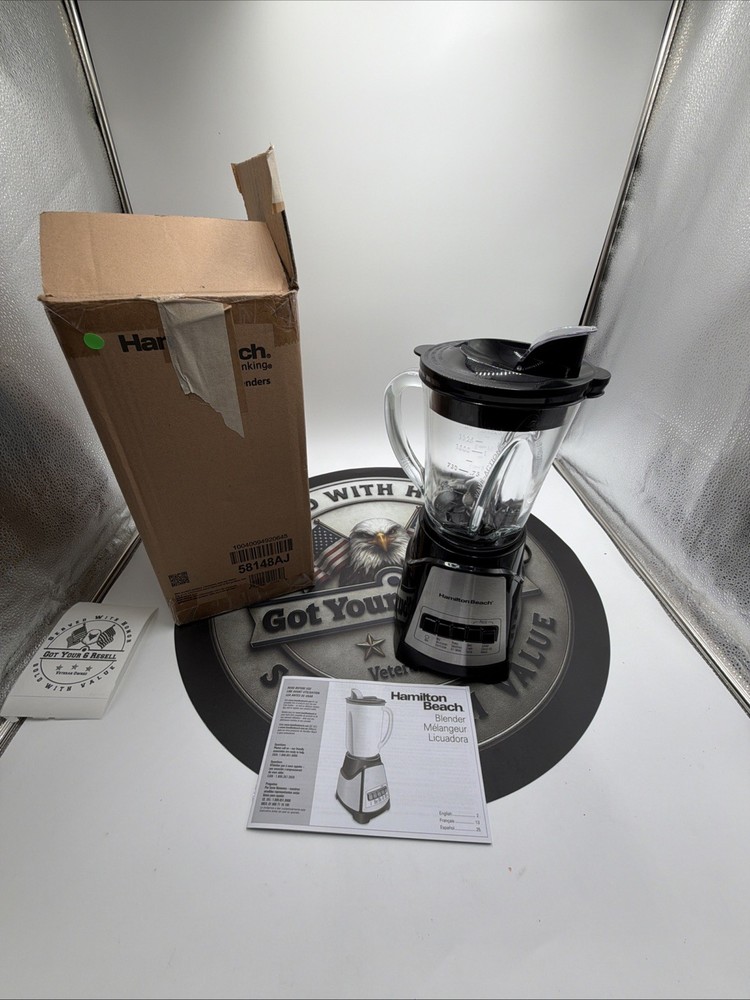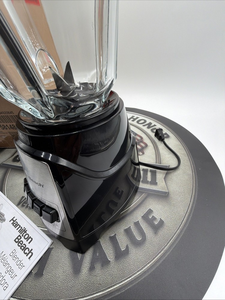 The Hamilton Beach Good Thinking Blender 58148AJ is a sleek black countertop blender made of glass. This model from Hamilton Beach includes a blender component, making it an essential addition to any kitchen for blending smoothies, soups, and sauces. With its durable material and reliable brand reputation, this blender is perfect for blending a variety of ingredients effortlessly.