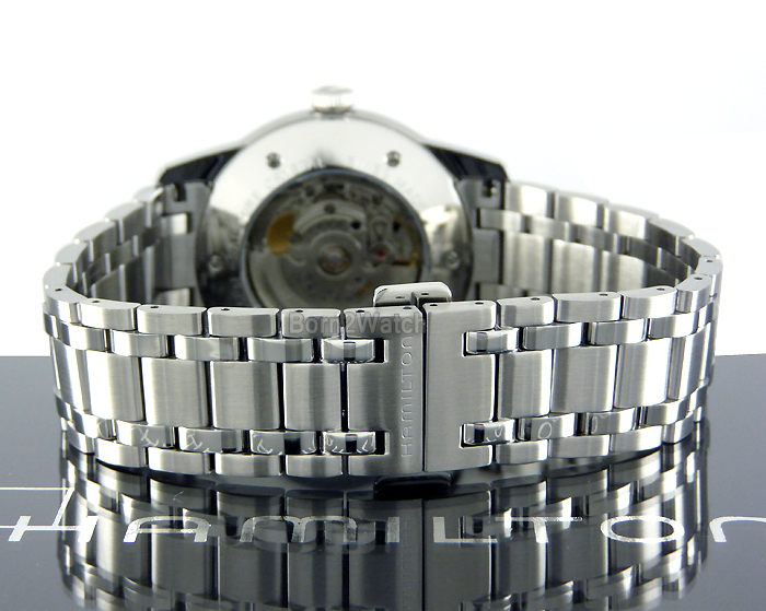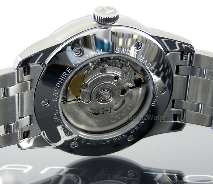 WE DO NOT SELL REPLICAS! 100% BRAND NEW AND AUTHENTIC! *SELLER RETIRED *SUPER CLEARANCE* MEN HAMILTON H40515131 100% BRAND NEW AND AUTHENTIC SWISS MADE AUTOMATIC SELF-WINDING MOVEMENT MANUAL WINDING CAPABLE 25 JEWELS BLACK DIAL DATE CALENDAR SMALLER SECOND HAND SUB-DIAL AT 8 O'CLOCK POSITION SAPPHIRE DOME CRYSTAL 100% SOLID STAINLESS STEEL IN POLISHED AND BRUSHED STEEL FINISH SQUEEZE-RELEASE BUTTERFLY SAFETY CLASP STEEL BACK COVER WITH OBSEVATION CRYSTAL 5 BAR / 72.5 PSI WATER RESISTANT CASE DIAMETER IS 42mm EXCLUDING CROWN CASE IS 13.5mm HIGH LUG SIZE 22mm WEIGHTS 6.1oz (175g) MAXIMUM WRIST SIZE 8-1/2" DOES NOT COME IN HAMILTON PRESENTATION GIFT BOX MSRP $1345