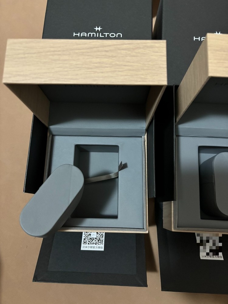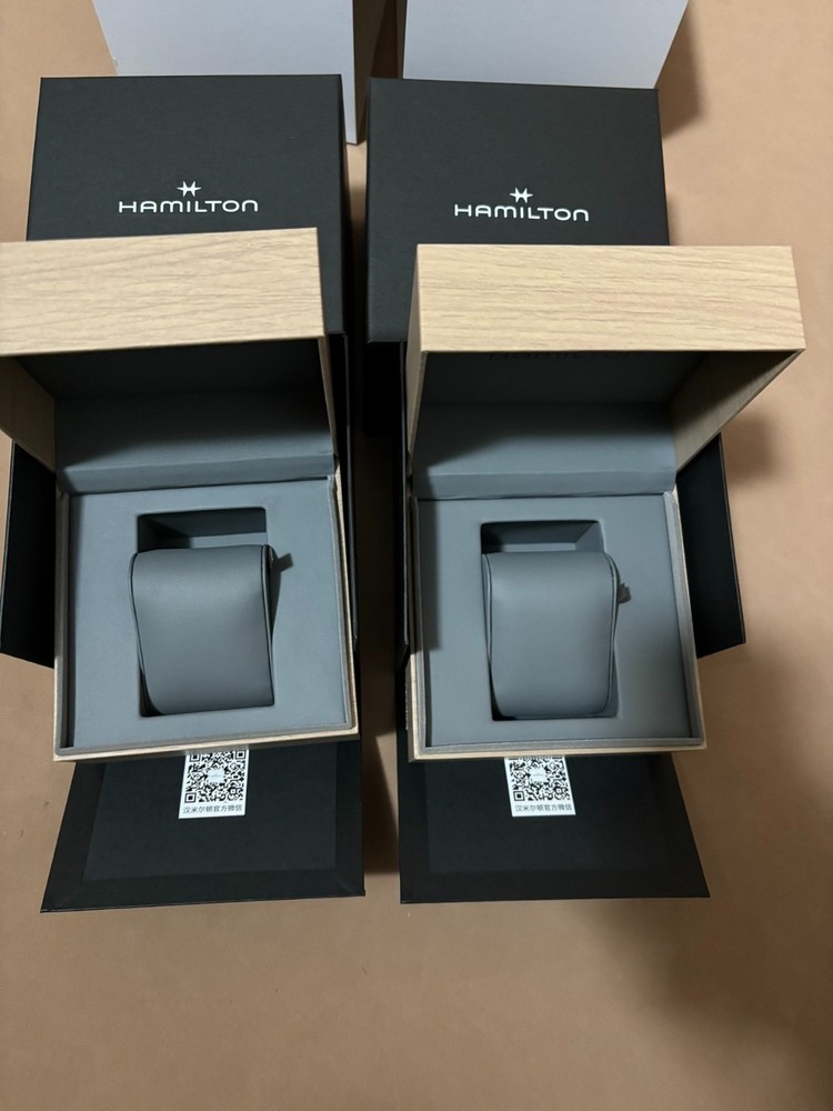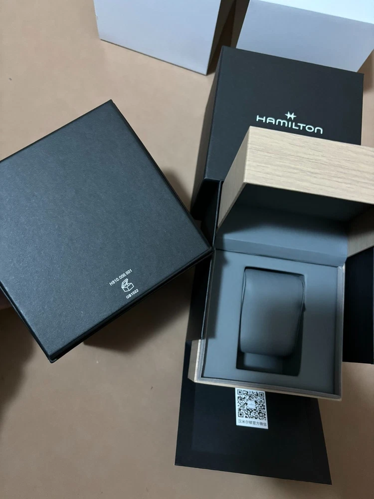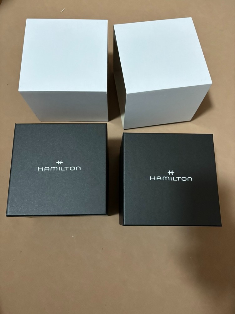 Genuine Hamilton watch box set, purchased directly from the official Hamilton boutique in Shanghai. 100% original and authentic Brand new, never used Includes both inner and outer boxes Ideal for storage, display, or gifting Price is for one box Perfect for collectors or Hamilton owners seeking original packaging.