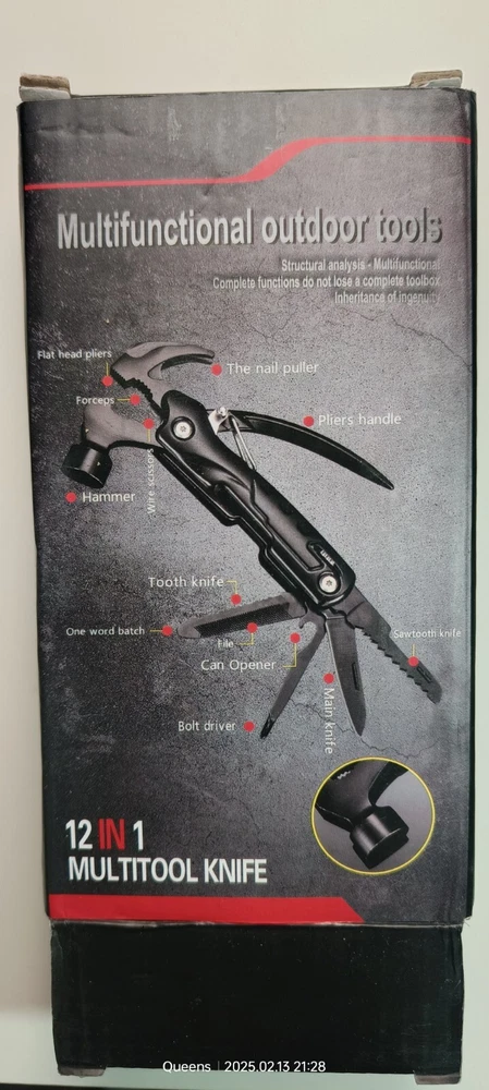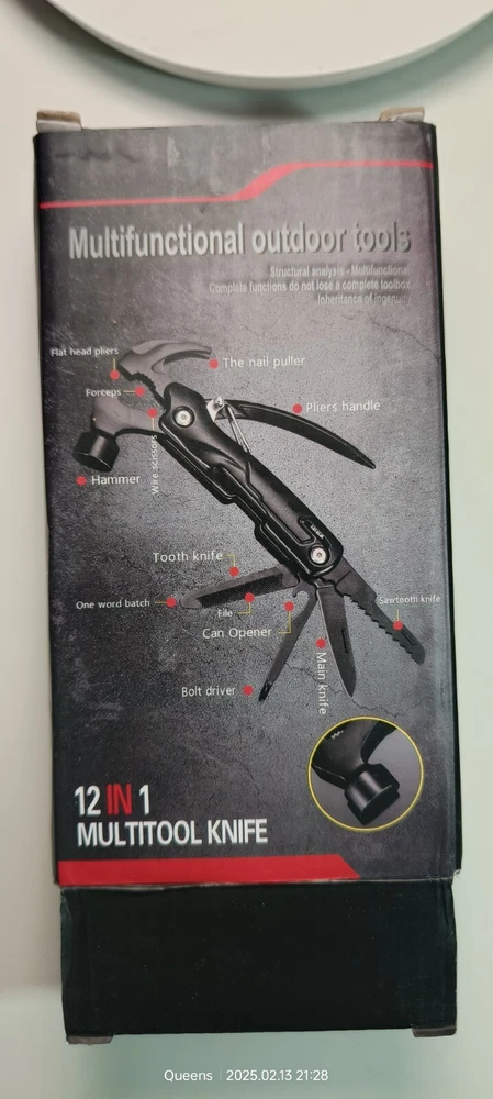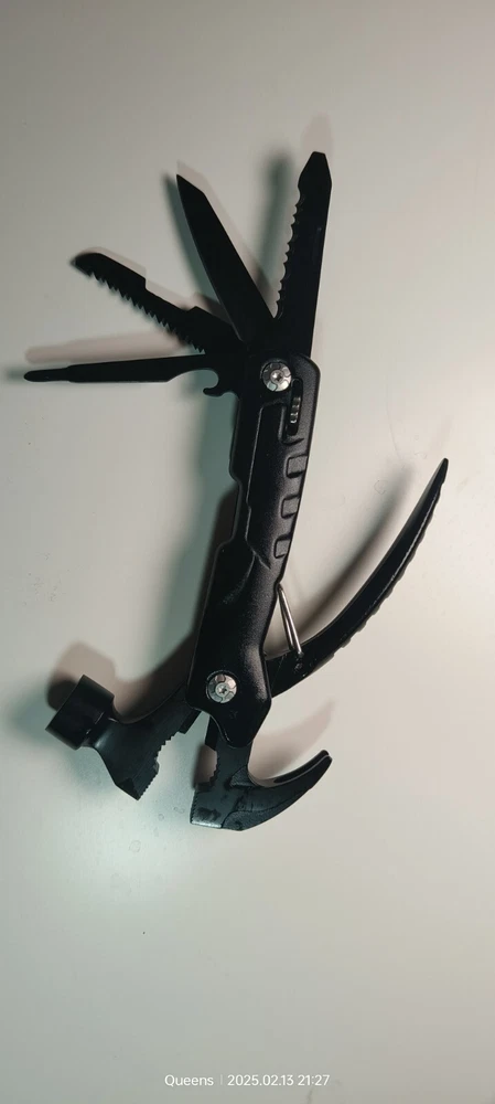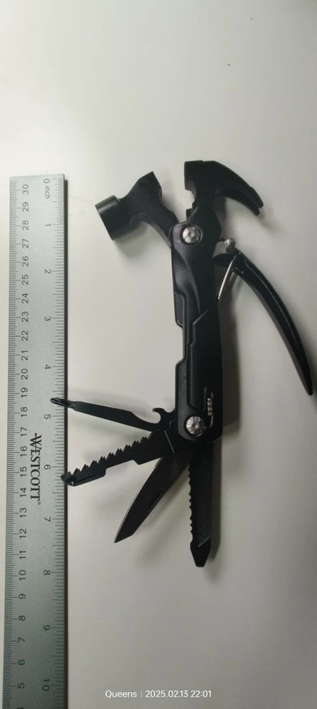 Blade Material: Carbon Steel, Stainless Steel Tools Included: Knife, Plier, Small Screwdriver, Wrench, Hammer, Saw Overall Length: 5.4×2.8×0.6 in Type: Multi-Tool Item Weight: 8.50z Country/Region of Manufacture: China Color: Black Number of Tools: 12 Material: Carbon Steel, Stainless Steel Brand: Ruiguan