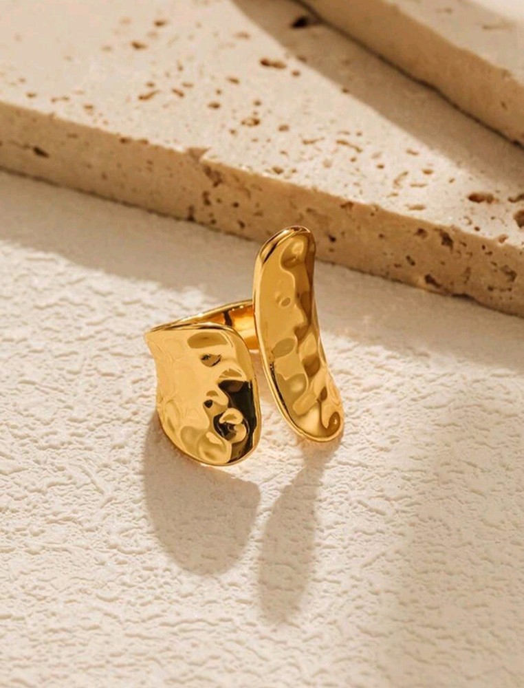 Embrace the beauty of asymmetry with this Unique Adjustable Asymmetrical Hammered Texture Ring, crafted from durable stainless steel and plated in radiant 14K gold. Its open, adjustable design ensures a comfortable fit while exuding effortless elegance with a modern twist. The hammered texture catches the light beautifully, creating an organic, handcrafted feel that makes each ring uniquely yours. Whether worn alone as a bold statement piece or stacked for a layered look, this ring adds a touch of artistry to any outfit. For those who appreciate the unconventional, this piece is more than just jewelry—it's a reflection of individuality and style.