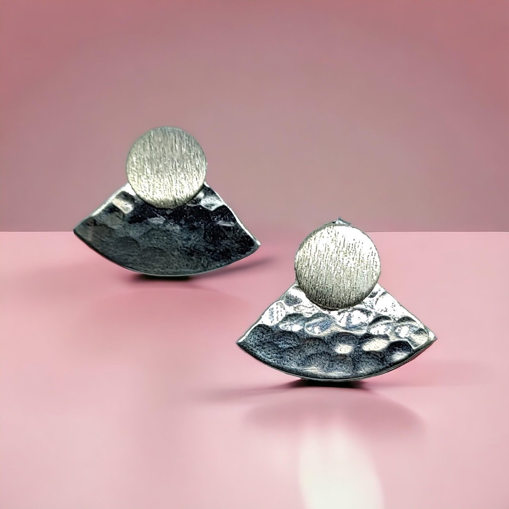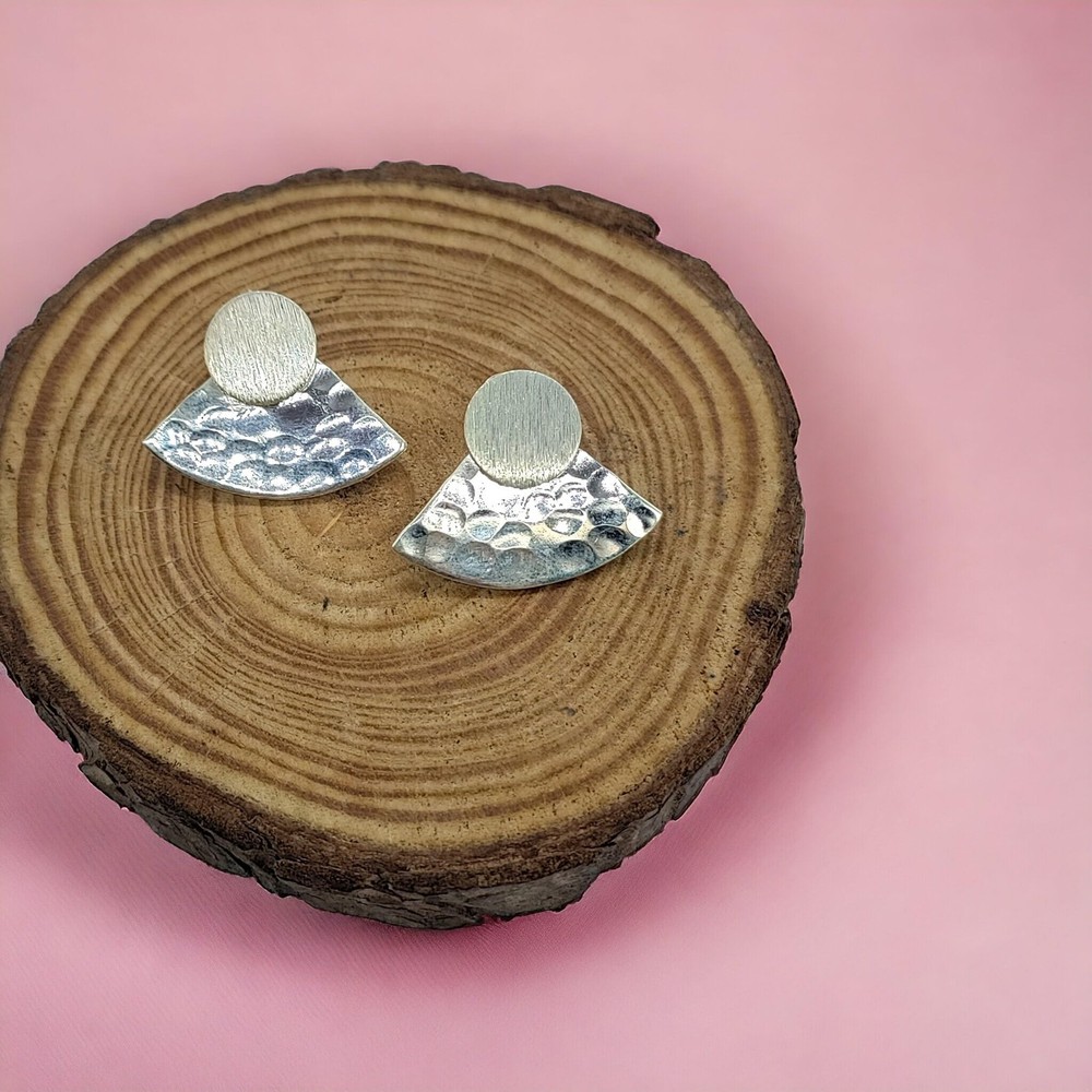 Hammered 925 Silver Stud Earrings Textured Gift for Women