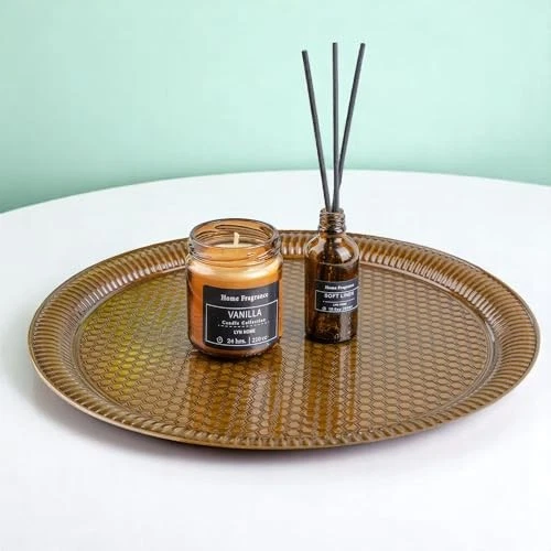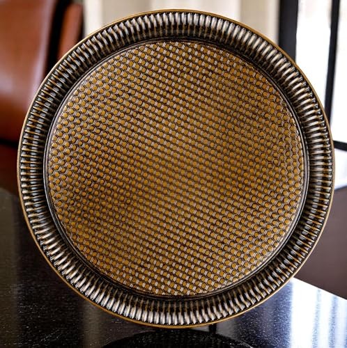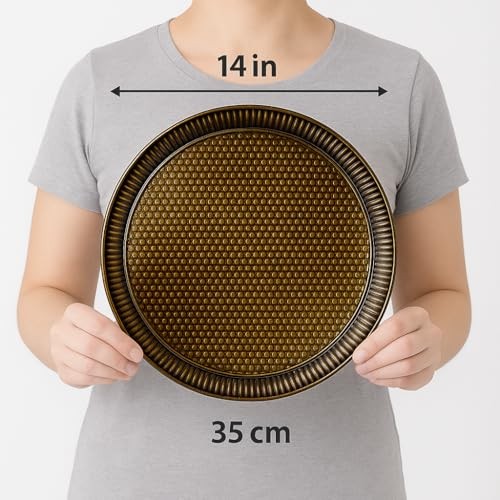 Material: Sheet Metal Manufacturer: Does Not Apply Style: Ottoman, Classic Occasion: Wedding, Holiday, Housewarming, Anniversary, Ramadan Date First Available: May 11, 2025 Recommended Uses For Product: Gift tray, Serving tea or coffee, Candle holder, Decoration Number of Packs: 1 Shape: Round Is Oven Safe: No Country of Origin: Turkey Item model number: ALV-TRAY-RND-35CM Tray Type: Serving Tray MPN: Does Not Apply Pattern: Hammered Ottoman Motif Item Length: 1 Maximum Weight Recommendation: 4 Pounds Color: Antique Green EAN: Does Not Apply Product Care Instructions: Hand Wash Only Product Dimensions: 13.8"L x 13.8"W x 0.78"H Item Height: 1 Is Dishwasher Safe: No Item Weight: 0.67 Pounds Special Feature: Hand wash recommended, Hammered texture, Durable, Ornate design, gtin13: Does Not Apply Item Width: 1 Type: Does Not Apply Theme: Classic, Ethnic, Turkish, Vintage UPC: Does Not Apply Finish Type: Embossed / Textured Brand: Does Not Apply Number of Items: 1