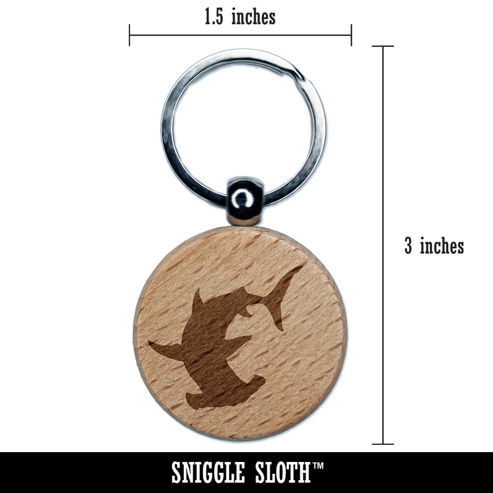 Hammerhead Shark Engraved Wooden Keychain Tag Charm