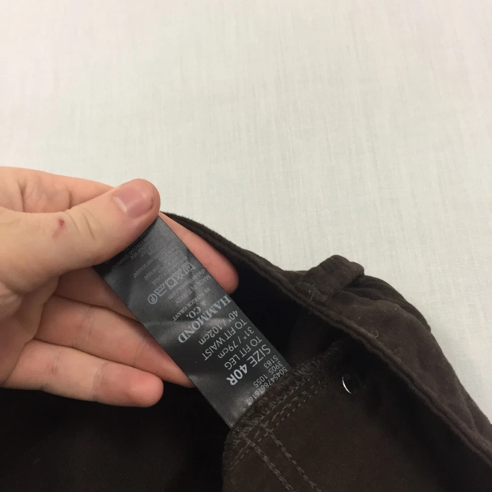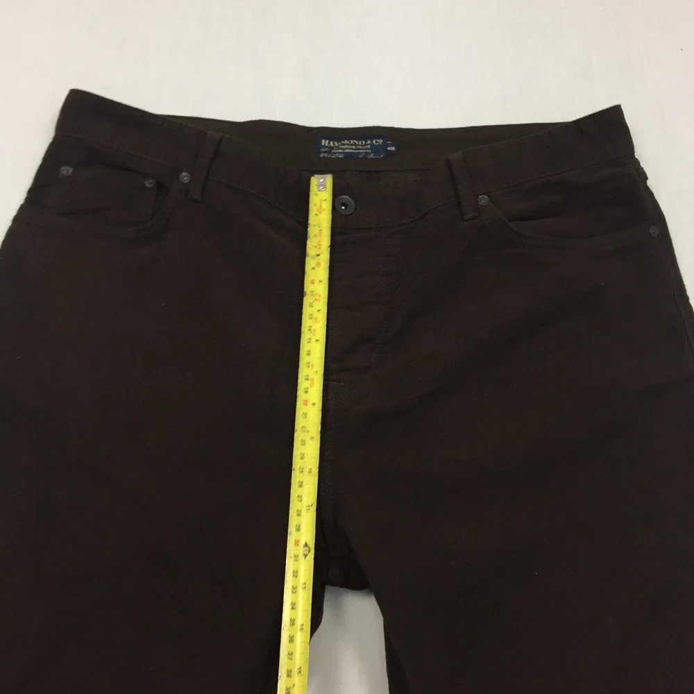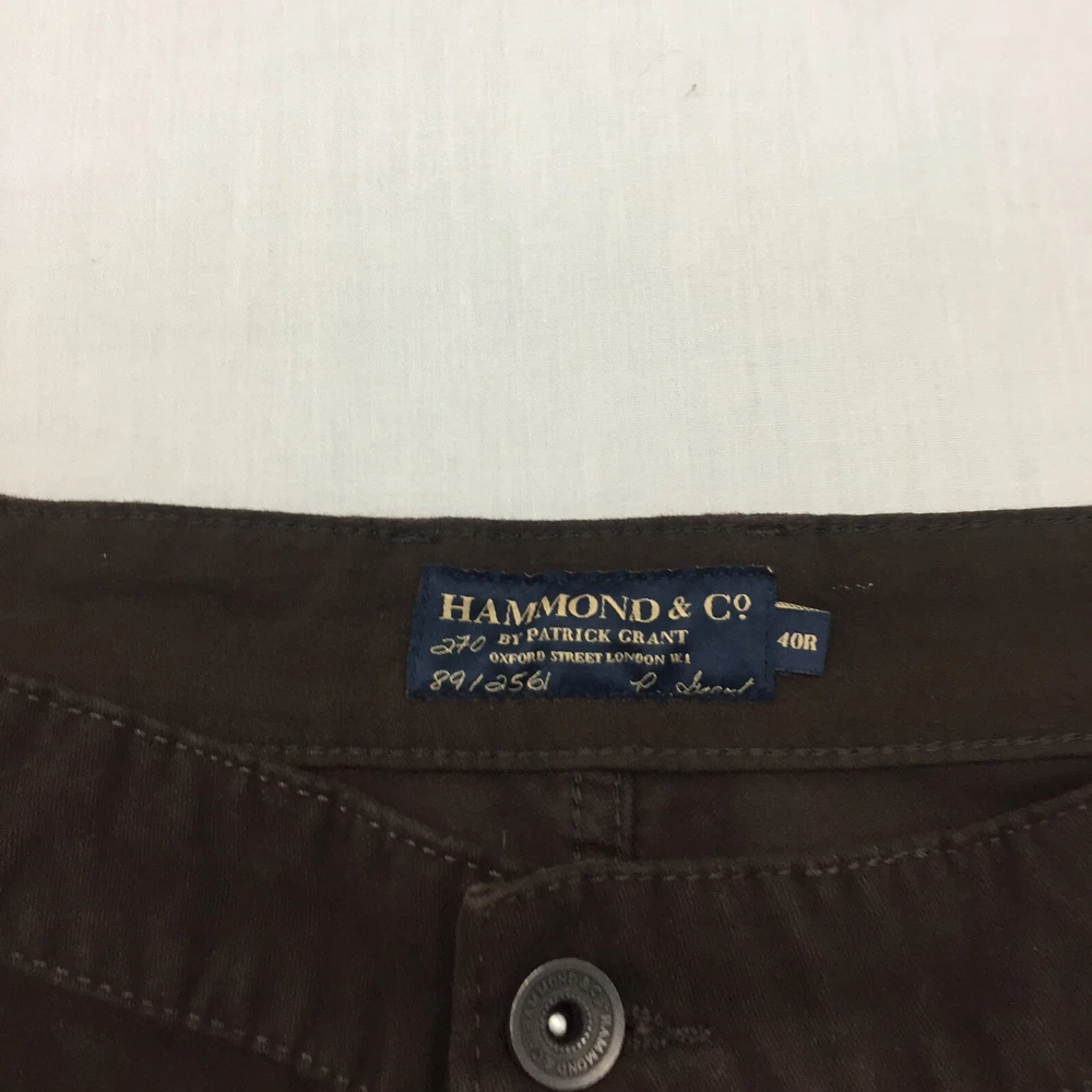 Occasion: Business, Casual, Travel Vintage: No Brand: HAMMOND & CO Size: 40 Colour: Brown Country/Region of Manufacture: Unknown Leg Style: Straight Pocket Type: Coin Pocket Fit: Regular Waist Size: 40 in Pattern: No Pattern Department: Men Type: Trousers Size Type: Regular Garment Care: Machine Washable Accents: Button Inside Leg: 31 in Fabric Type: Canvas Personalise: No Season: Autumn, Spring, Summer, Winter Closure: Button Material: Cotton Blend Style: Chino Seller Notes: “Good used condition, check below for full description & photos.” Rise: Mid (10-12 in) Handmade: No