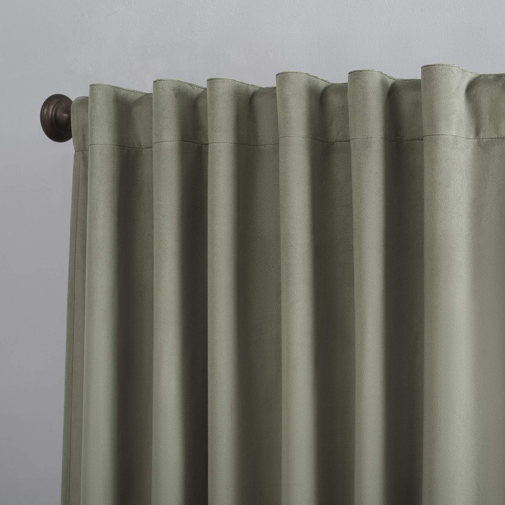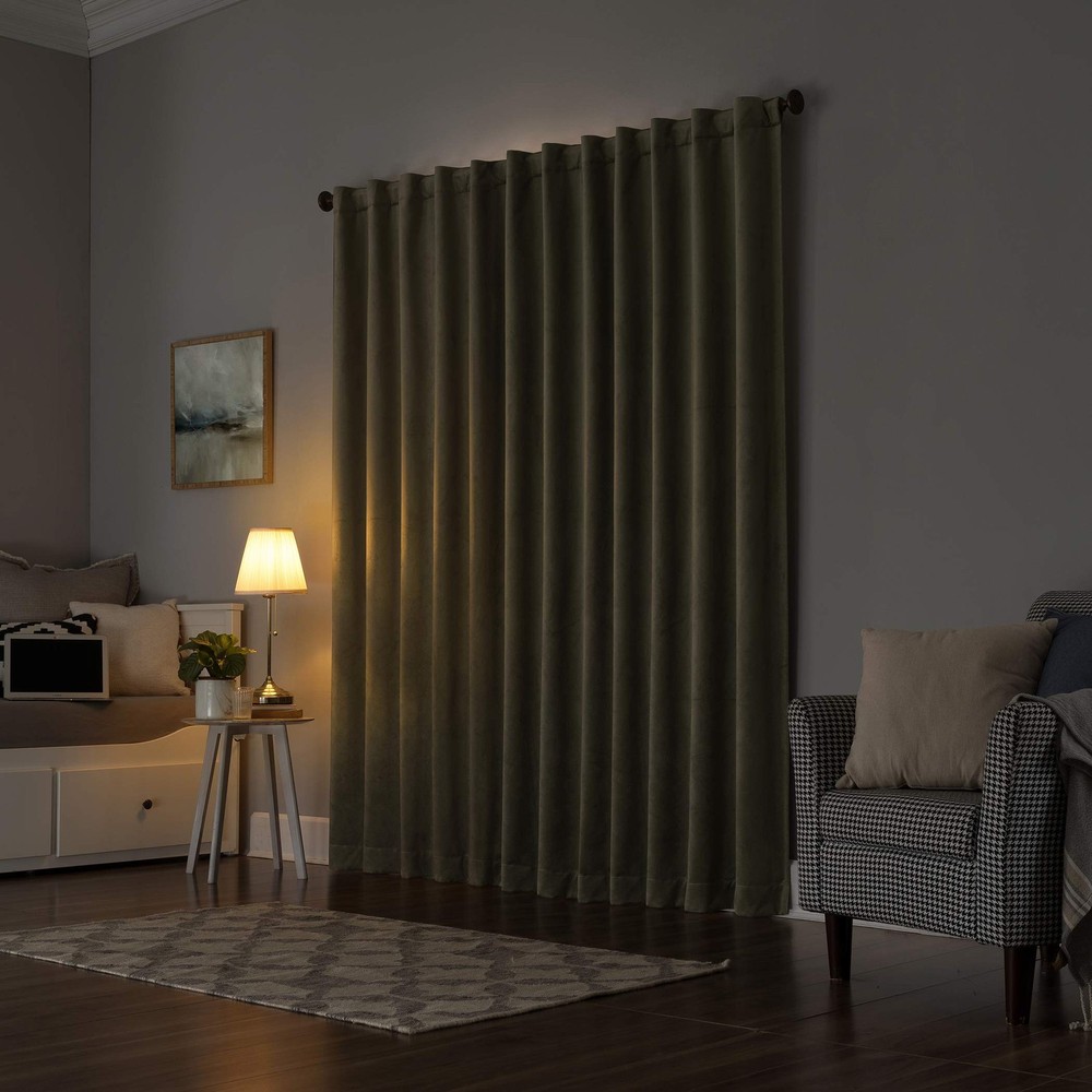 Decadent velvet fabric in solid tones to effortlessly complement your window space Extreme Thermal Lining reduces outside noise and helps keep summer heat and winter chill out of your home Fits a rod up to 1.5" diameter 100% blackout Panels are sold individually and measure 50" W Noise reduction by up to 40% helps you get a sounder, more uninterrupted sleep Hidden back tabs fit curtain rods up to 1.5" in diameter Panels sold individually. Measure carefully prior to purchase. (Image features 2 panels)