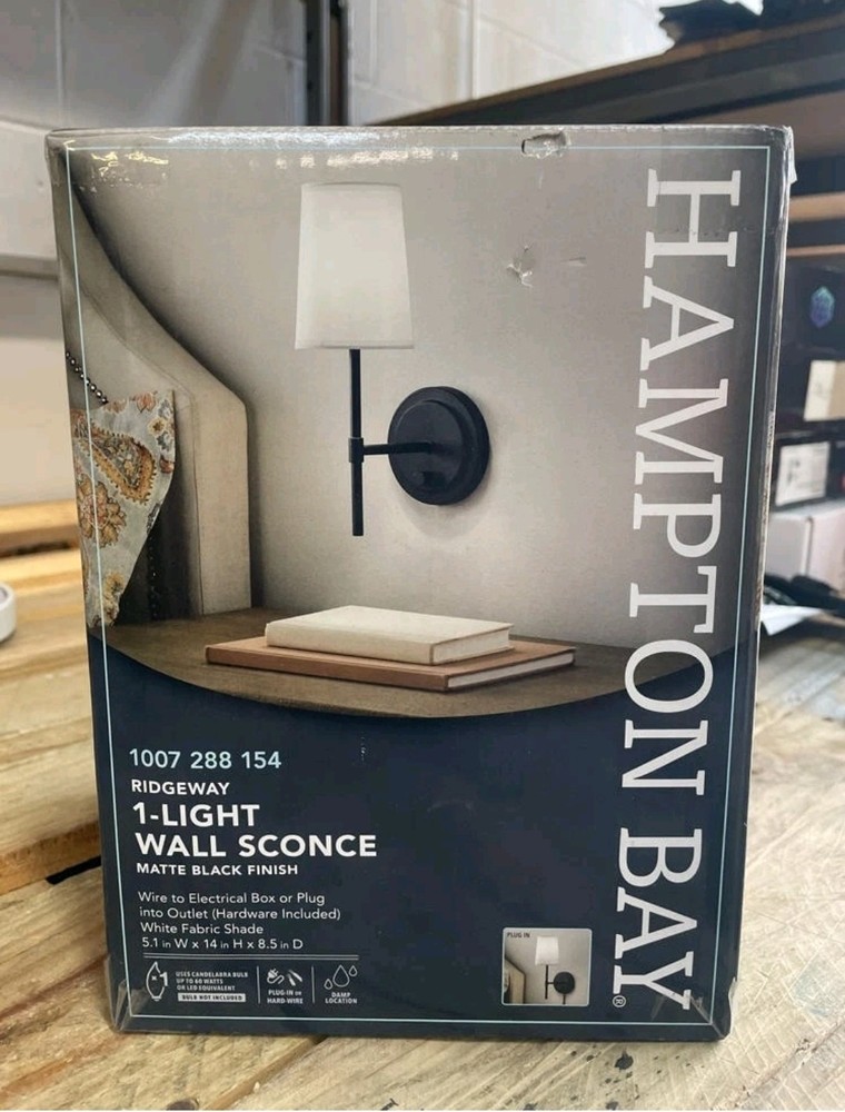 Hampton Bay Ridgeway 1-Light Matte Black Wall Sconce. Condition is New. Shipped with USPS Priority Mail.