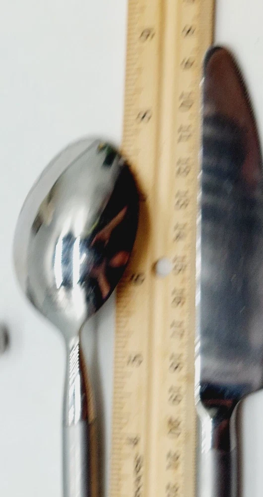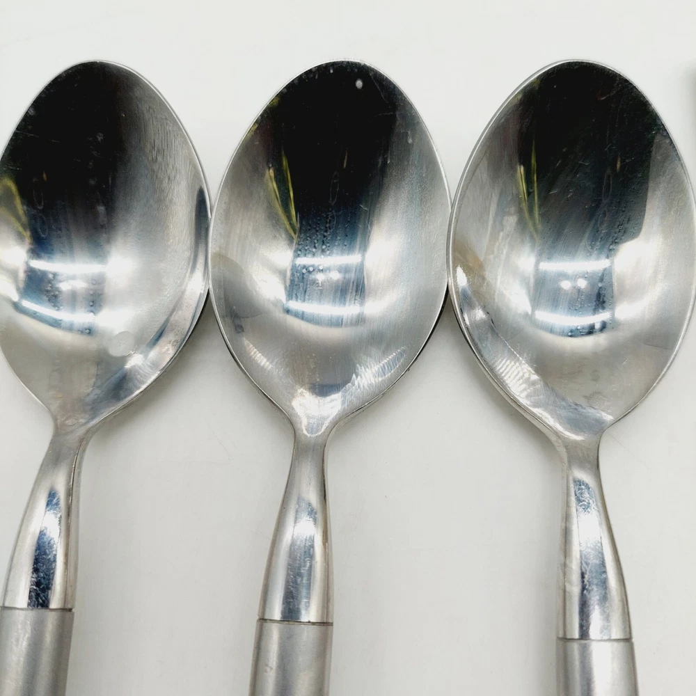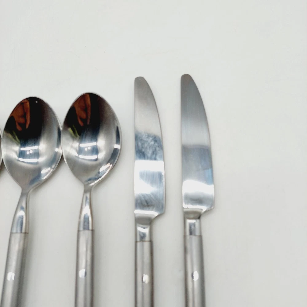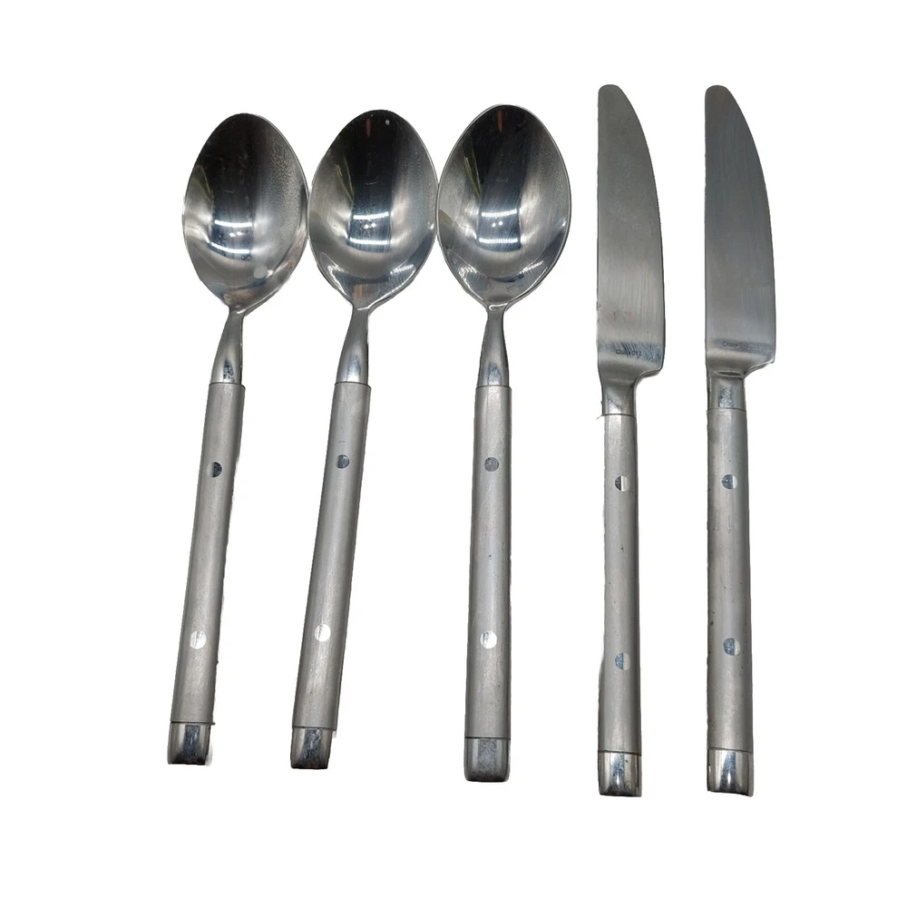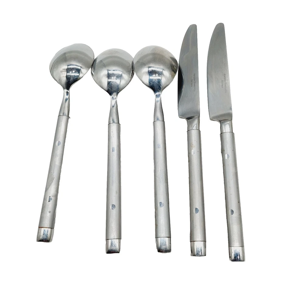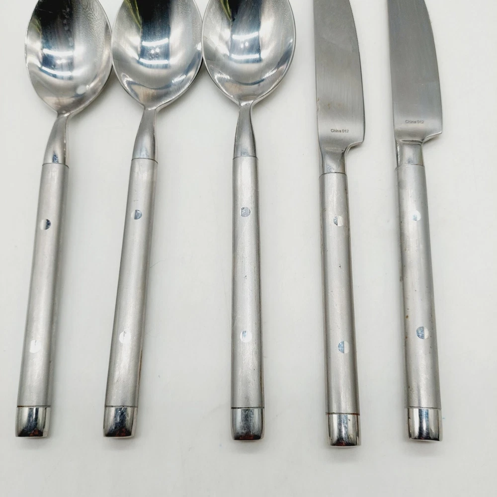 Have some wear. 3 dinner Spoons 7 3/4" & 2 dinner knives Please see attached photos