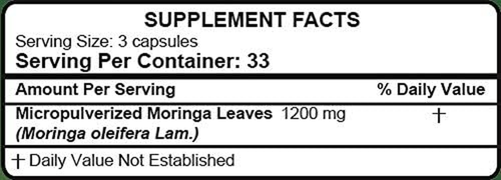 Moringa leaf powder is a culinary and superherb traditionally used by our ancestors for generations to enhance health because it contains many natural nutrients. Our Moringa powder ingredient contain no preservatives, artificial colors, or additives. Our herb is harvested, processed, and stored for maximum quality and safety. Each bottle contains 100 capsules of pure Moringa powder, making it easy to take your daily dose on the go. Moringa has been a trusted resource for enhancing overall health and well-being among our ancestors for many generations. Its extensive use and benefits have been passed down from generation to generation, making it a valuable super herb. *Statements regarding dietary supplements have not been evaluated by the FDA and are not intended to diagnose, treat, cure, or prevent any disease or health condition.