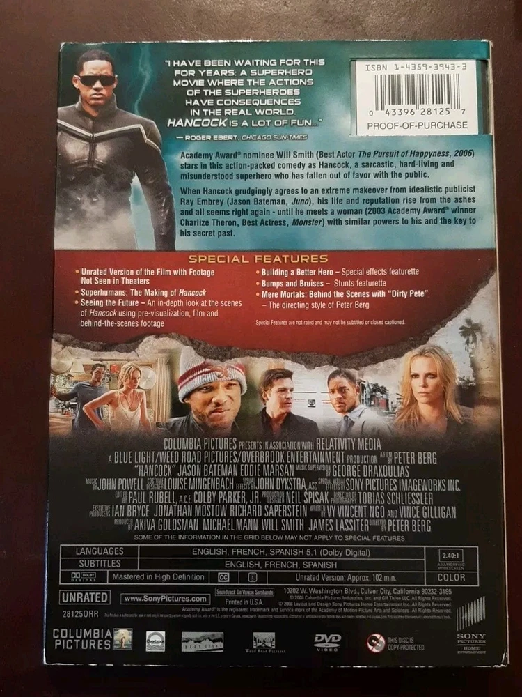 Rating: NR Studio: Sony Pictures Edition: Unrated Edition Movie/TV Title: Hancock Format: DVD Actor: Will Smith