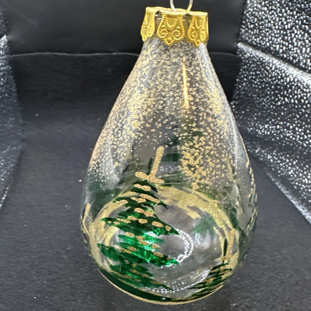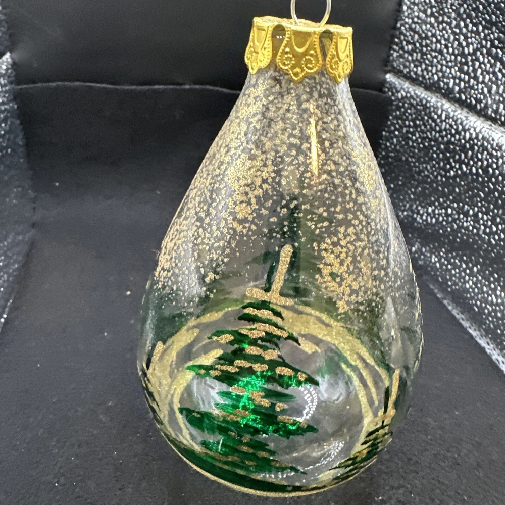 Features: Vintage Type: Ornament Set Includes: Ornament Item Width: 3 in Material: Glitter Occasion: Christmas Vintage: Yes Color: Gold Item Length: 5 in Shape: teardrop Production Style: Stained Glass Handmade: Yes Size: Medium Brand: Unbranded Production Technique: Hand Blown Glass Collection: Ornaments