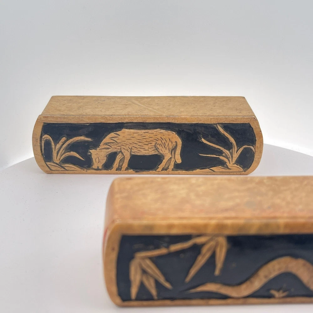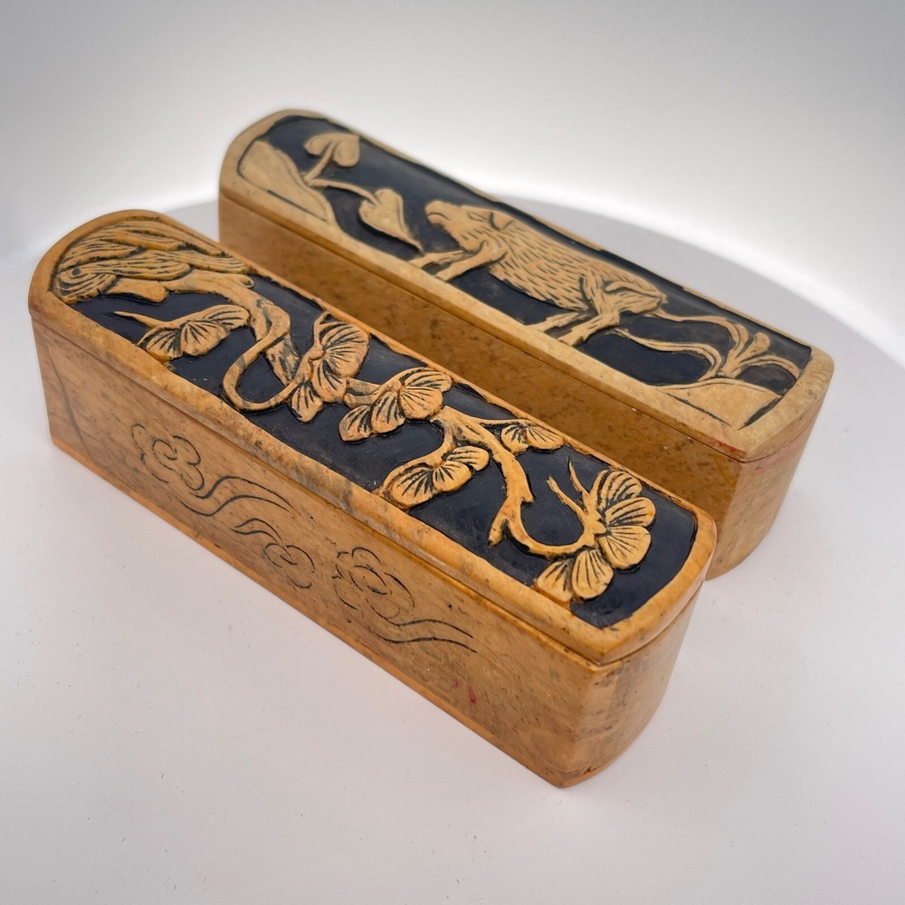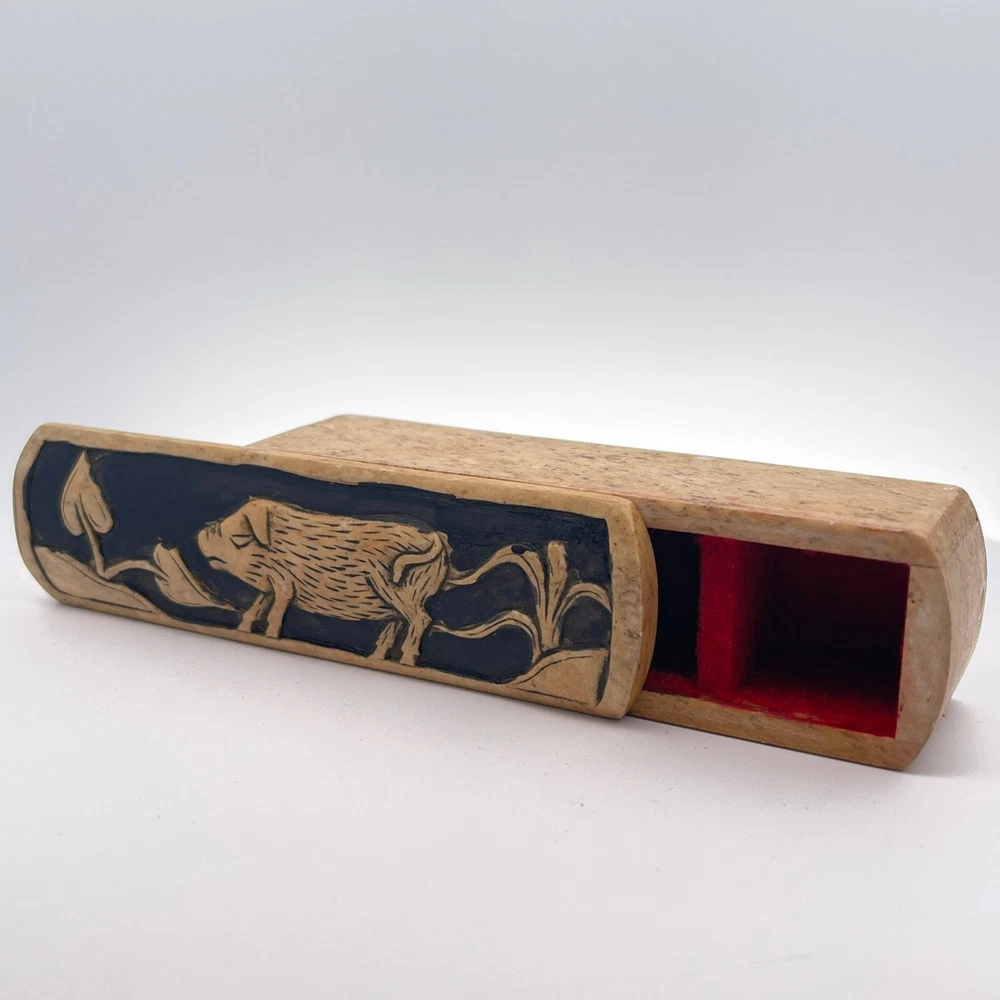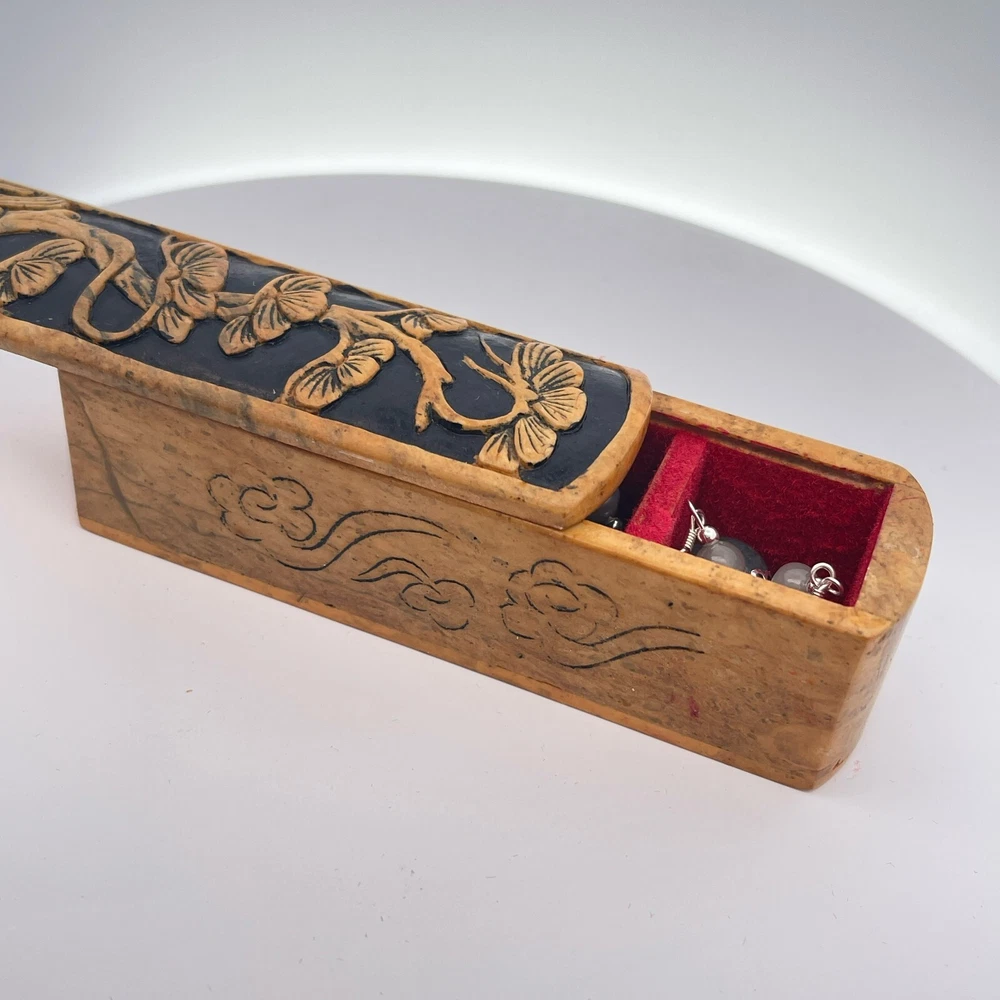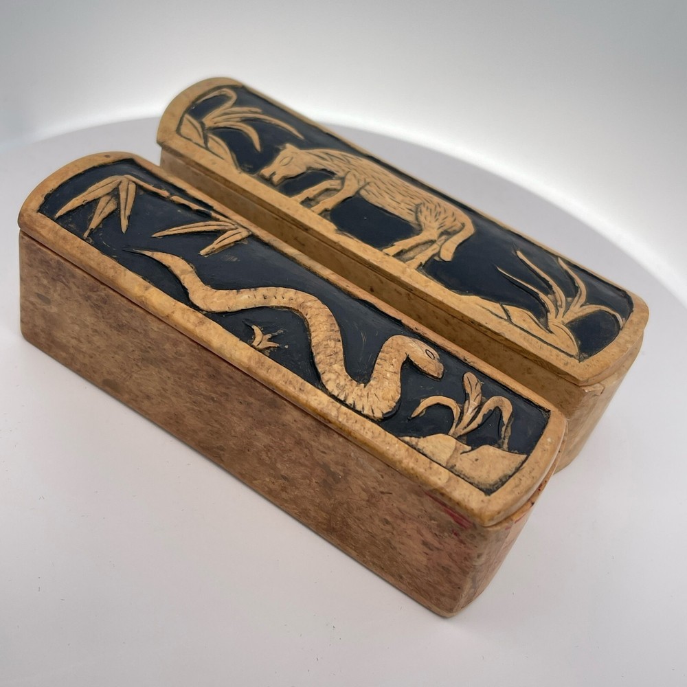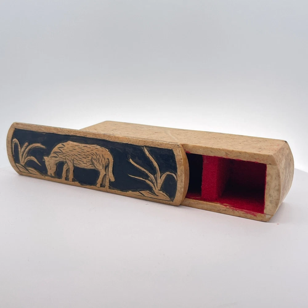 Hand Carved Animal Motif Stone Jewelry Box - Long Keepsake Case