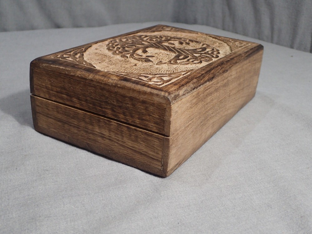 Hand Carved Tree of Life Wooden Tarot Jewelry Storage Box Keepsake