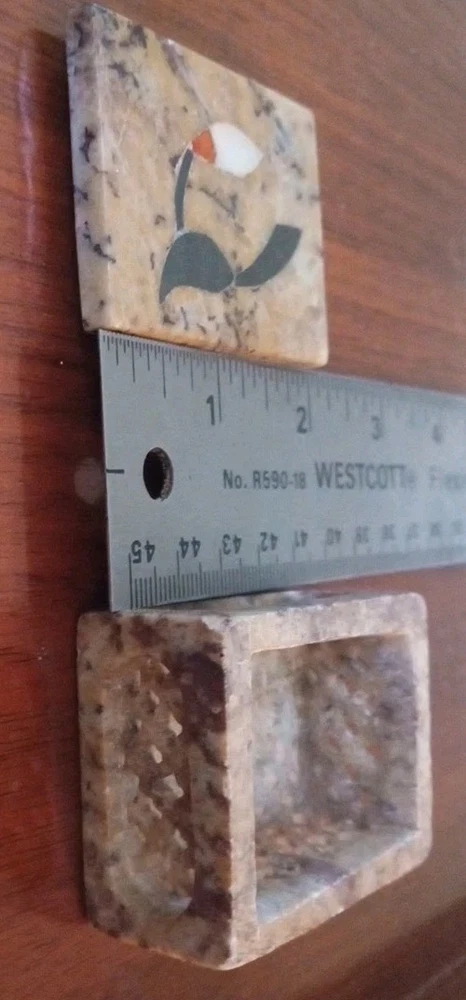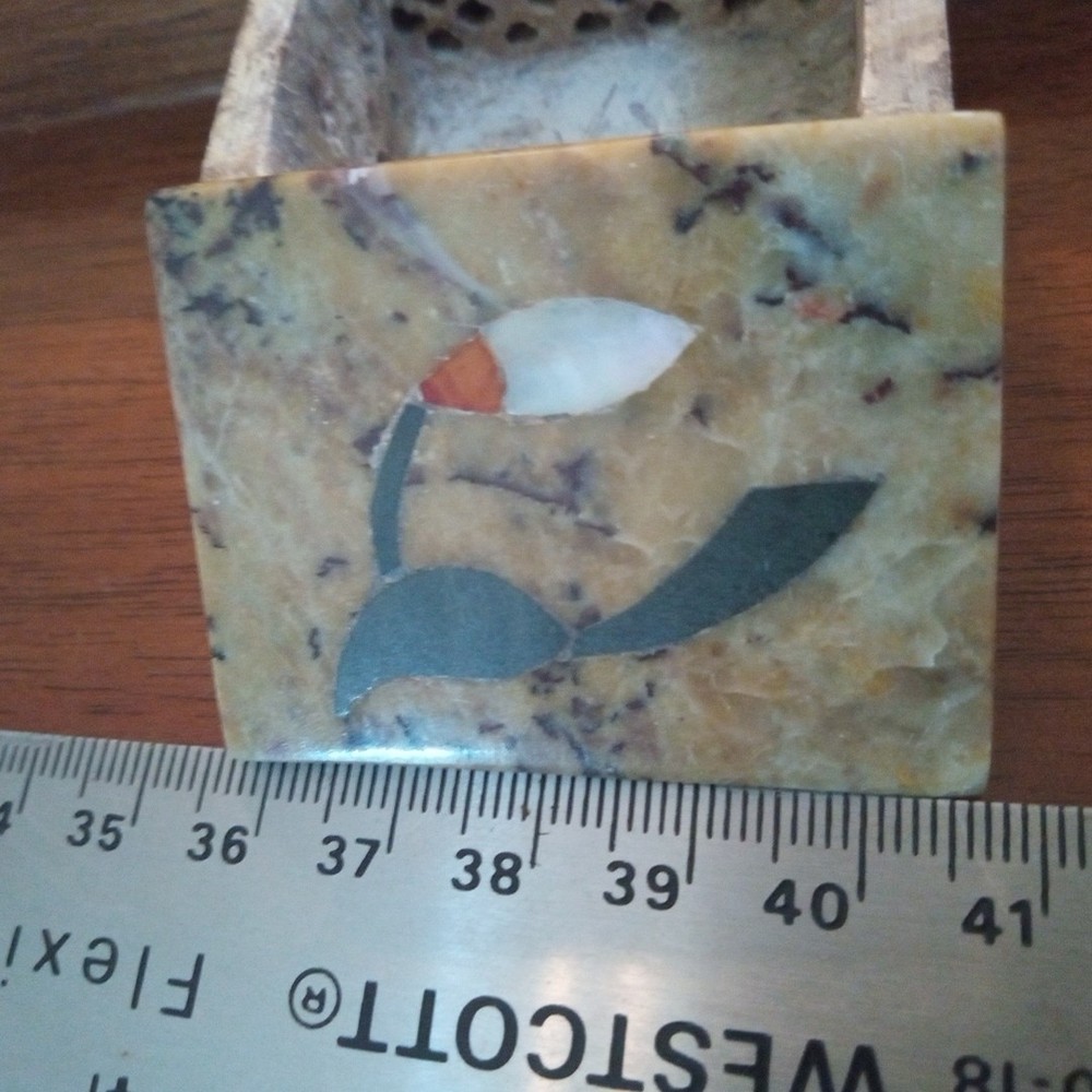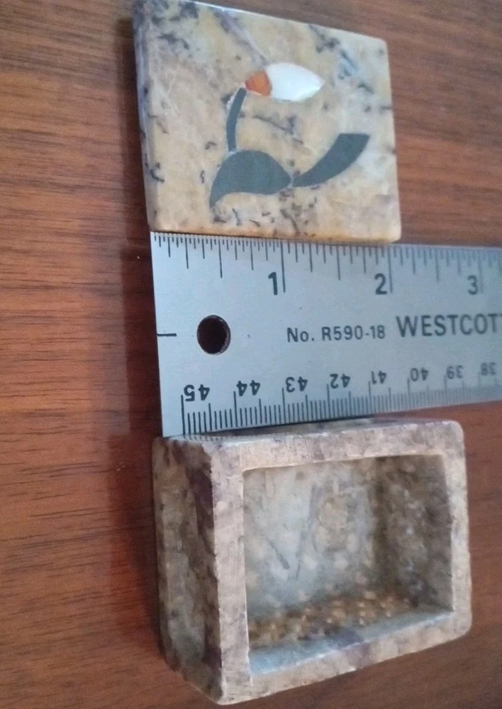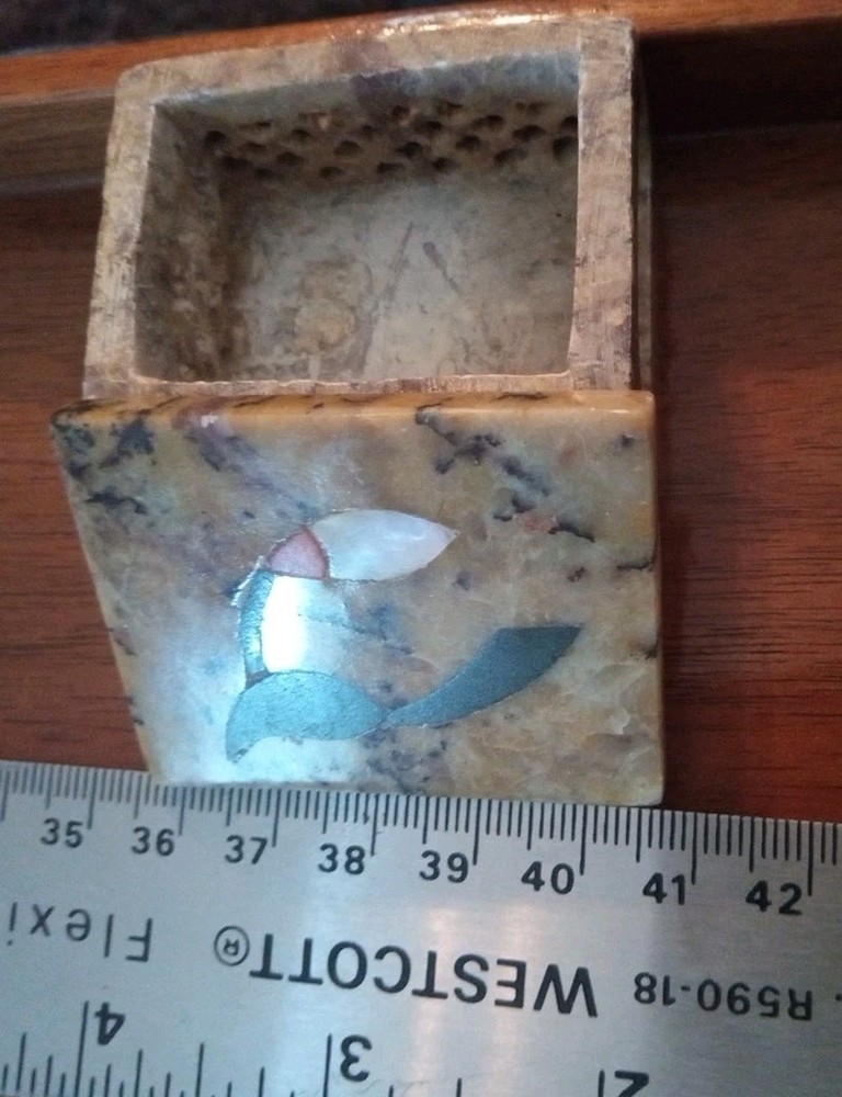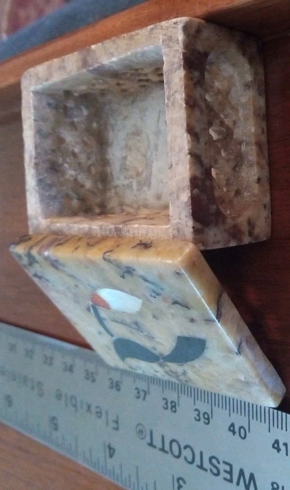 Hand Carved Vintage Soapstone Ring Box with Mother of Pearl Flower Inlay from India