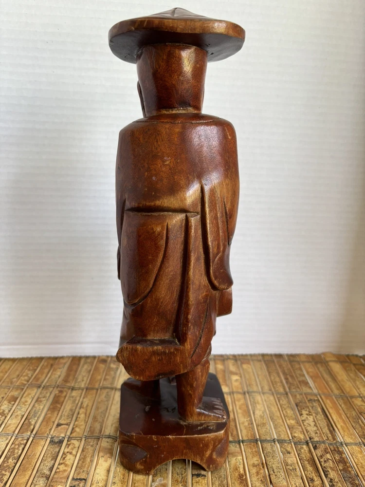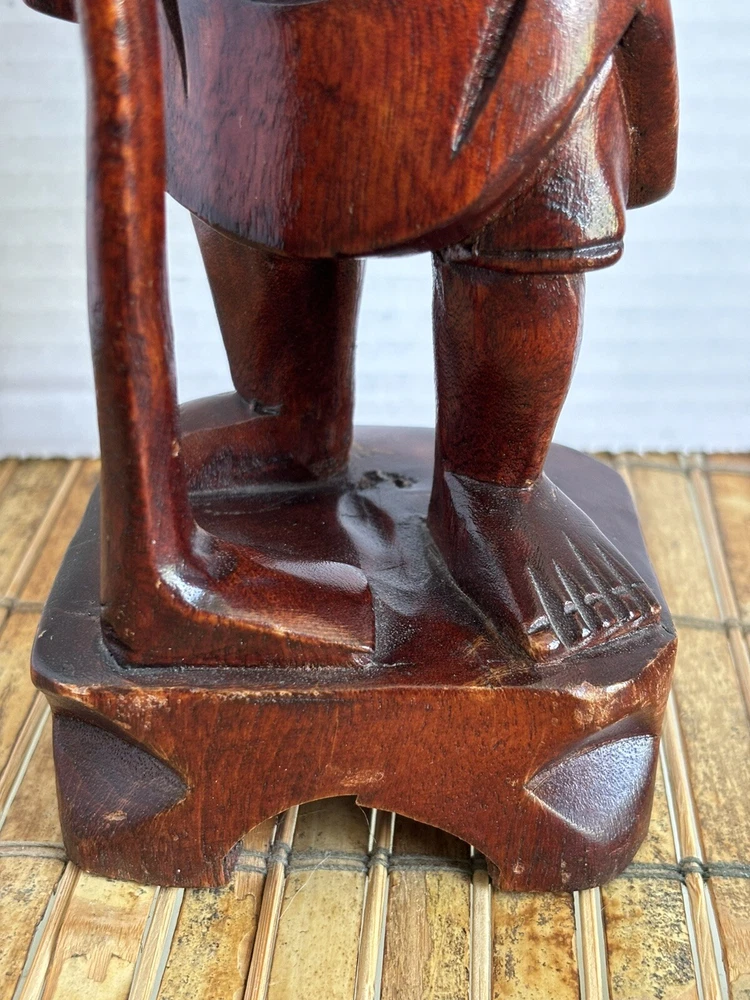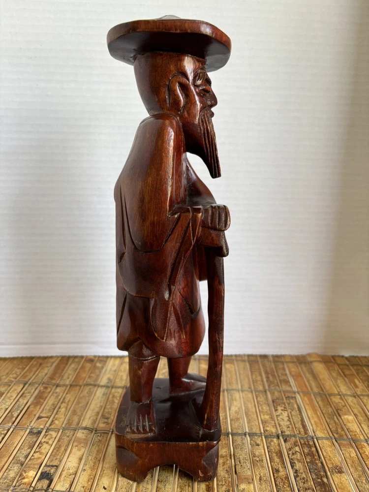 Hand-Carved Wooden Bearded Wise Man Vintage Statue Beautiful hand-carved wood piece. Intricately detailed. He has a look of contemplation. Measures approximately 12" in height and 3" wide. See photos for carving details and condition. Contact me with any questions. Unique sculpture. Great addition for any collector or to add to your decor! Thank you for looking! Check my feedback and purchase with confidence.