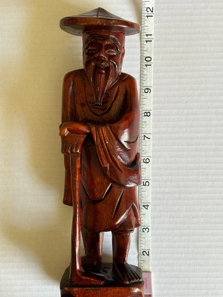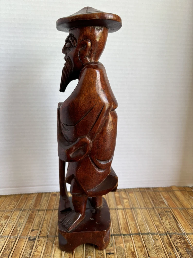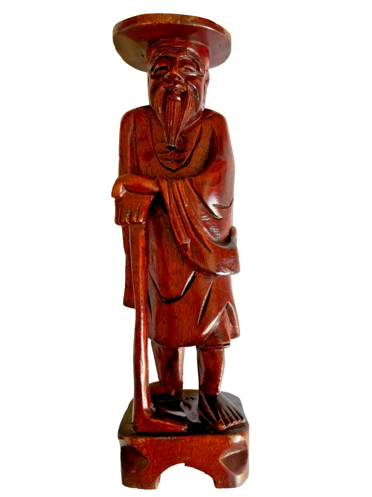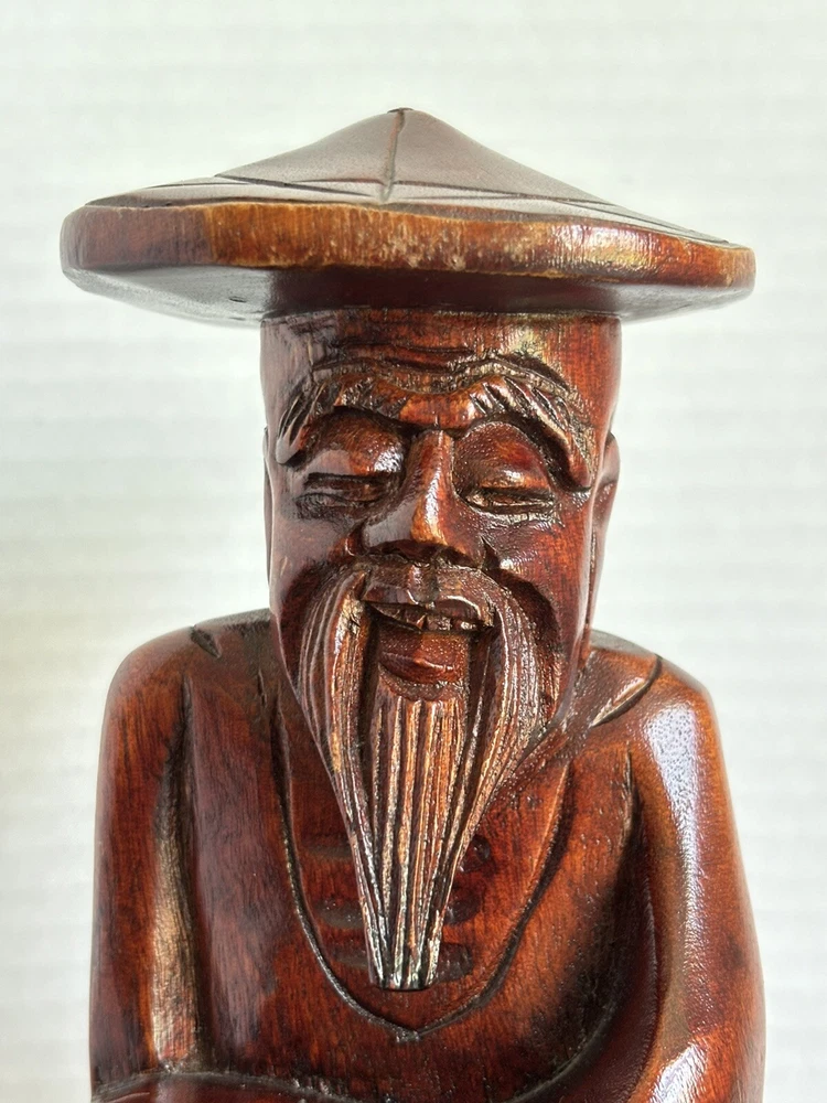 Hand Carved Wooden Bearded Wise Man Vintage Statue Oriental