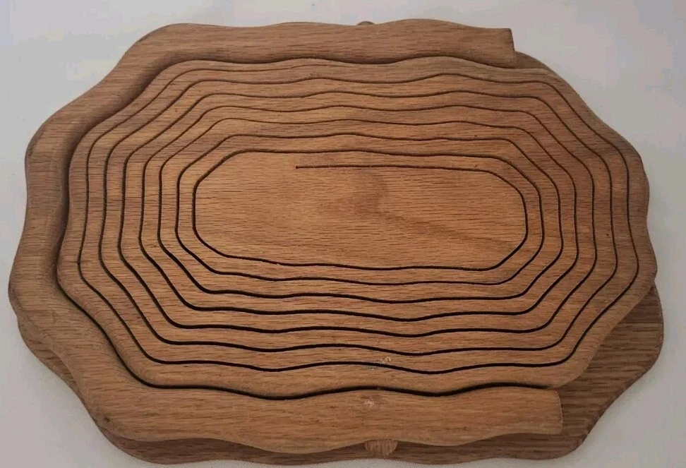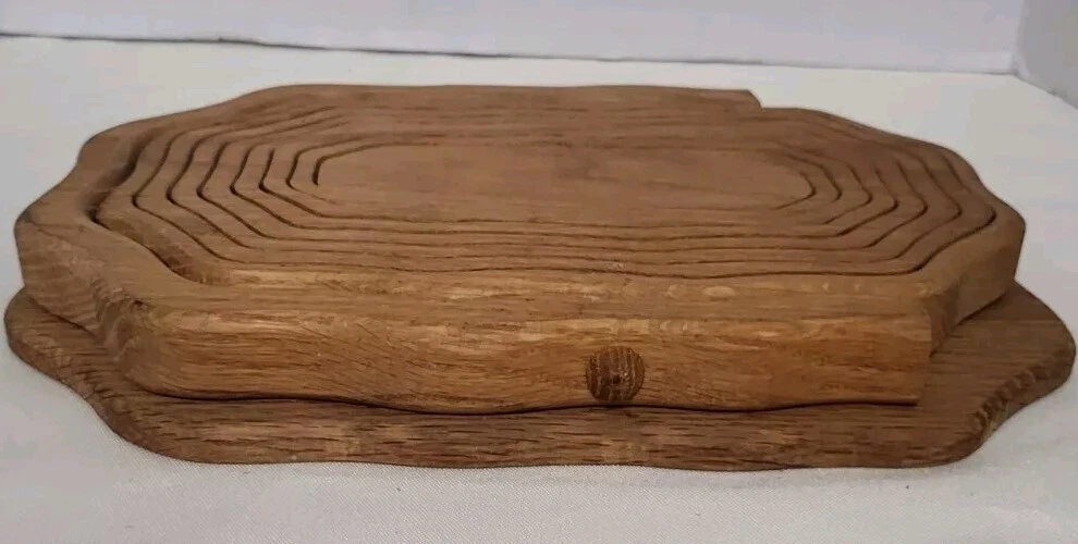 This handcrafted wooden basket is perfect for storing fruits, vegetables, and other items. The basket features a collapsible and folding handle for easy storage and transportation. The natural finish adds to its modern style and charm. Measuring 11 inches in length, 9 inches in height, and 8 inches in width, this medium-sized basket is perfect for any room in your home. Its weave pattern and rectangle shape make it a unique and beautiful addition to your home decor. The basket is an original piece, manufactured in 1970 and is perfect for collectors or as a decorative item.
