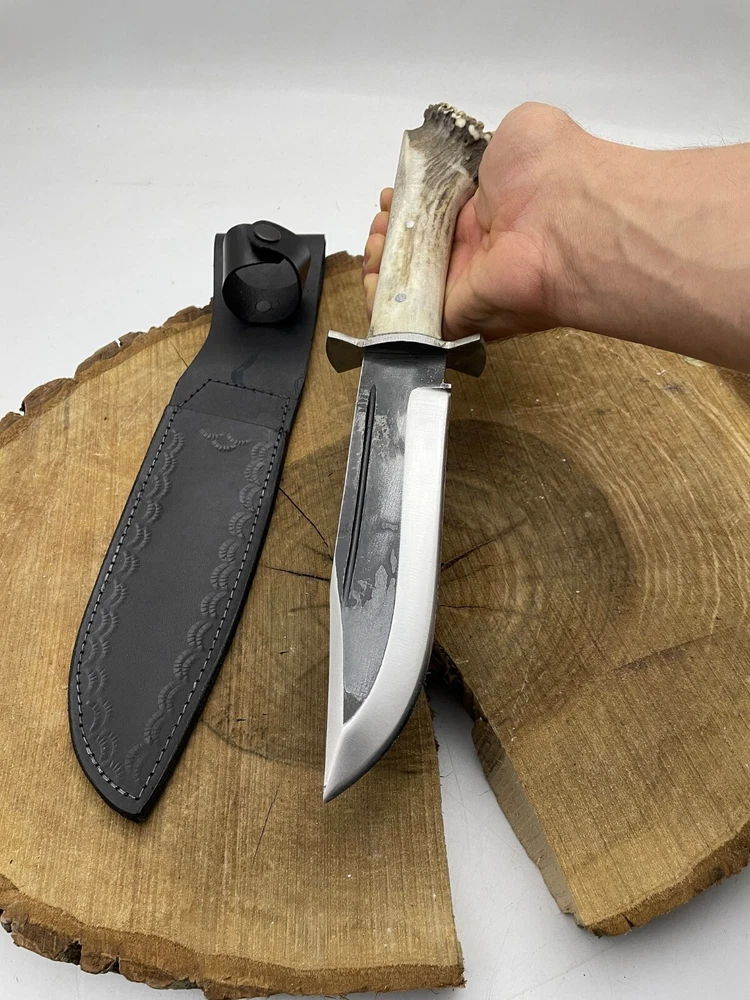 Hand Forged Carbon Steel Antler Crown Bowie knife Hunting knife pair of 2 pieces
