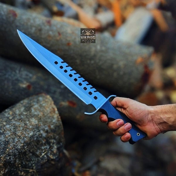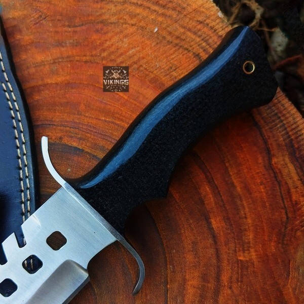 Tactical Survival Bowie Knife – Sawback Spine & Black Handle Prepare for any challenge with this rugged and stylish Tactical Survival Bowie Knife. Crafted for durability and functionality, this knife features a full-tang stainless steel blade with a razor-sharp edge and a unique sawback spine. The sawback design not only adds a fierce aesthetic but also provides practical cutting power for wood, rope, and more. The spine is perforated with a row of ventilation holes, reducing weight while enhancing the blade's tactical look. The ergonomic black G10 handle ensures a secure, non-slip grip even in wet or muddy conditions. A double-sided guard adds extra hand protection, making this an ideal choice for hunters, adventurers, and survivalists. Specifications : Overall Length: Approx. 15 inches Blade Length: Approx. 10 inches Blade Material: Carbon Steel with Sawback Spine Handle Material: Textured Black Design Features: Full-tang, sawback spine, ventilation holes, protective guard Perfect for outdoor expeditions, collectors, or as a gift for blade enthusiasts, this Bowie knife is a reliable companion for any adventure. SHIPPING We use DHL or UPS normally. 5-7 Business days delivery and trackable easily. International shipping custom duty is paid by the customer, we are not responsible for the custom duties applied by your countries rules and regulations. For more queries contact us Customization Available Quality is Assure We deliver through DHL Please check Dhl Coverage area before placing order if your Address fall in DHL remote Area List You will have to pay $50 or change your Address Your satisfaction is very important for us if you have any issue contact us first before leaving any bad Review your issue will be resolved more efficiently ASAP Vikings Armory