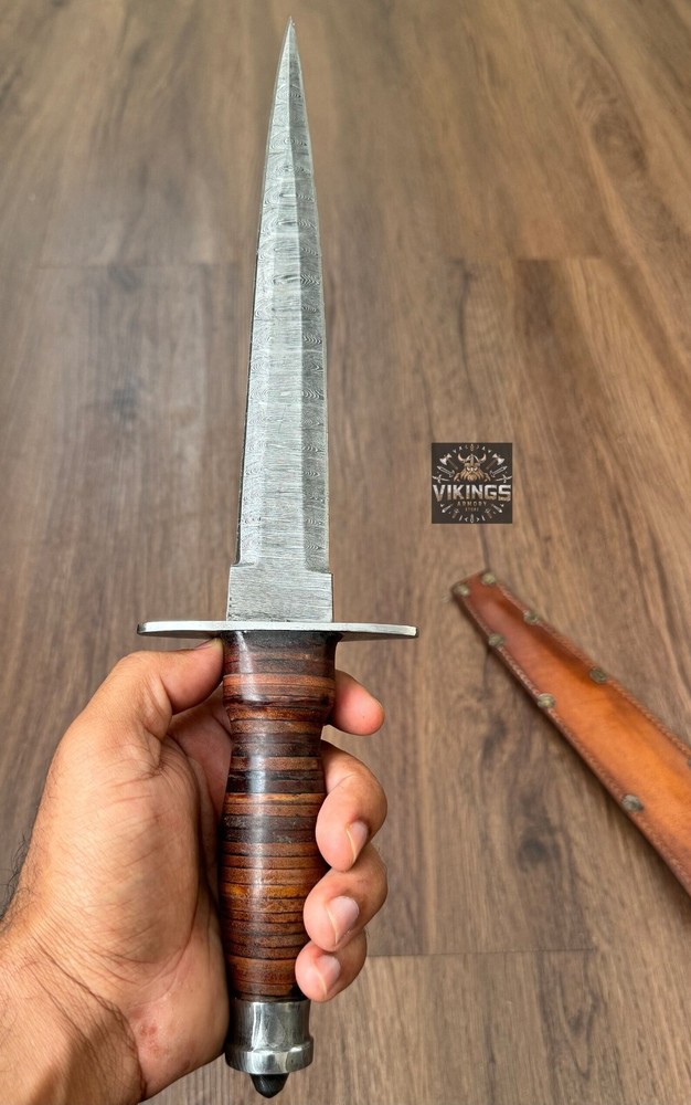 This hand forged Damascus Steel Dagger from Vikings Armory is a must-have for any knife enthusiast. With a blade length of over 5 inches and a plain edge, this drop point blade is perfect for hunting, survival situations, and everyday use. The blade is made of high-quality Damascus Steel and has a silver finish that adds to its aesthetic appeal. The dagger comes with a hidden tang and a wooden handle that provides a comfortable grip for ambidextrous dexterity. It also includes a sheath for easy storage and transportation. This original piece from Pakistan is a collectible fixed blade knife that is sure to impress. Overall Size Approximately 13 inches Handle Size Approximately 5 inches Blade Size Approximately 8 inches SHIPPING We use DHL or UPS normally. 5-7 Business days delivery and trackable easily. International shipping custom duty is paid by the customer, we are not responsible for the custom duties applied by your countries rules and regulations. For more queries contact us Customization Available Quality is Assure We deliver through DHL Please check Dhl Coverage area before placing order if your Address fall in DHL remote Area List You will have to pay $50 or change your Address Your satisfaction is very important for us if you have any issue contact us first before leaving any bad Review your issue will be resolved more efficiently ASAP Vikings_Armory