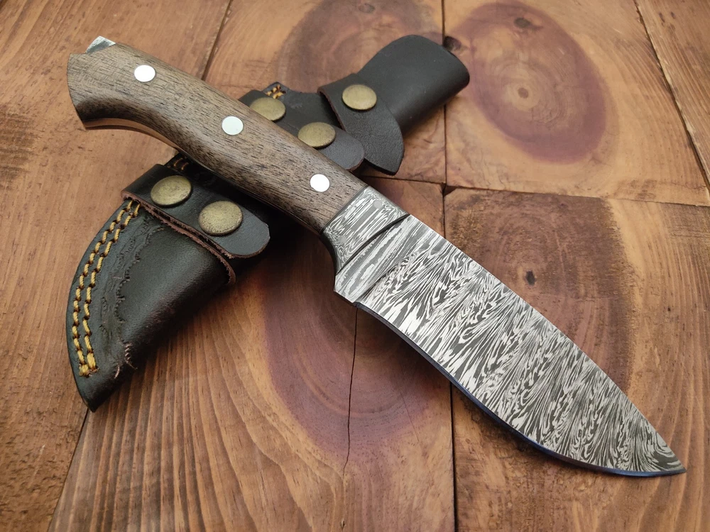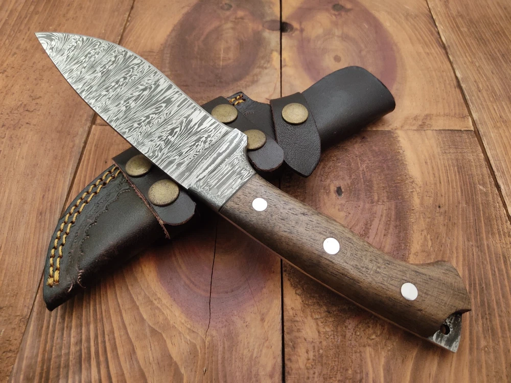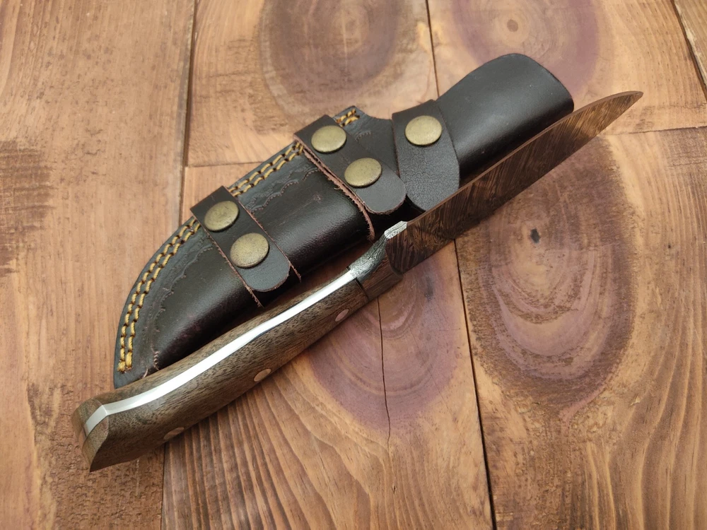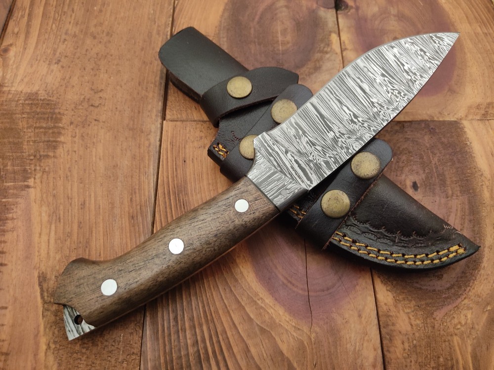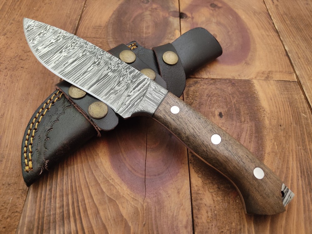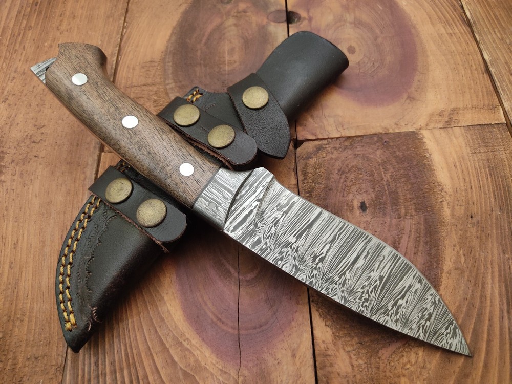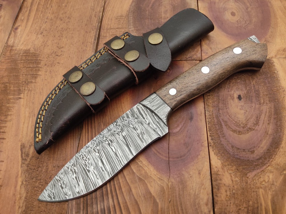 ITEM # HM-166 Fabulous Unique THUNDER STORKE Custom MADE KNIFE Custom Handmade Damascus Steel Fixed Blade Camping Survival Outdoor Skinner Hunting Knife For Gift These unique superb design HUNTING KNIFE are fully HAND MADE KNIFE are a piece of Craftsmanship. Blade of the knives are hand forged with above 216 Layers of 1095 and 15N20 high carbon tool steels, with Nickle layer. Blade has been given excellent heat treatment to get a 58 to 60 HRC. Gorgeous Handle & Blade Damascus Steel Bolster & Walnut Wood Handle Damascus Steel Blade 10.2" Long | Blade is 5" Long | Handle is 5.2" 4 mm Thick Blade | Beautiful Worked Blade & Handle WORK OF ART This prestigious unique HUNTING knife was designed and custom made by THUNDERSTORKE . Blade was given excellent heat treatment and Rockwell hardness of the blade 58 to 60 . PAYMENT: As Per Ebay Requirement DISPATCH TIME: 2 to 3 DAYS AFTER RECEIVING YOUR PAYMENT COURIER / SHIPPING: When we print the postage label there is a number that is on the label. This number is called a "Delivery Confirmation Number". The post office is not like UPS or FEDX where they scan the mail at the receipt point and then track it to your door. What the post office does is scan the item when it is delivered (if they choose to) and then you will see that it was delivered. Sometimes they do scan it when you drop it off, but this is rare. If they did scan it at a sorting facility, you see it moving across the USA. But this is very rare. - eBay confuses the buyer with the "tracking number" next to the post offices "delivery confirmation number" when in reality there is not a tracking number. You can ask this at the post office and they will concur. We print labels off the internet using eBay's USPS shipping program and then we drop the packages off at the post office, similar if you were mailing a stamped letter. The post office is supposed to scan it "received" and they do this about 50% of the time. But sometimes they do not scan them. Do not worry, we did mail the item and it is on it's way to you. COMBINE SHIPPING OFFER: We Do Combine Shipping Discount On Multiple Purchase are as Follow. BUYER FEEDBACK AND Detailed Seller Ratings (DSR) SCORES : We spend a lot of time trying to describe our knives 100% perfect in detail, but sometimes we miss things. In the event that we missed something, upon inspection of the item when you receive it, let us know by contacting us via the "Contact Seller" link (next to our user ID profile) and allow us to solve your problem before leaving us low DSR scores (Detailed Seller Ratings) or neutral and negative feedback. - Help us, help ourselves to do better, with our future business on eBay by allowing us to correct our faults and fix the sale with you to a positive. We need to keep our scores high to continue to offer our great knives for sale on eBay. KNIFE CARE and SHEATHS : Leather sheaths pull moisture out of the air and tend to rust knife blades if not stored properly. When you are done using the knife, store it away from the leather sheath and put gun oil, Seal 1, or a similar protectant on the blade and store. Damascus, 1095HC, and D2 can rust and develop stains if not lubricated. AGE RESTRICTION: WE DON'T SELL KNIVES TO ANY ONE WHO IS UNDER AGE . GUARANTEE: If you are not happy with your purchase, we offer you a peace of mind guarantee if you return the product within 7 working days. We will refund your money back immediately ON RECEIVING THE KNIFE BACK IN ORIGINAL CONDITION. DELIBERATE TAMPERING WITH THE PRODUCT OR MISUSE WILL NOT QUALIFY FOR THE REFUND. SHIPPING CHARGES ARE NON-REFUNDABLE. DISCLAIMER: WHEN YOU ARE BIDDING ON THIS KNIFE YOU ARE CONFIRMING US THAT YOUR AGE QUALIFIES FOR THIS PURCHASE AND THIS IS A LEGAL PURCHASE. TAKES NO RESPONSIBILITY FOR ANY ILLEGAL PURCHASE Thank you, - Props in the Photos are NOT INCLUDED. Knife & Sheath ONLY .