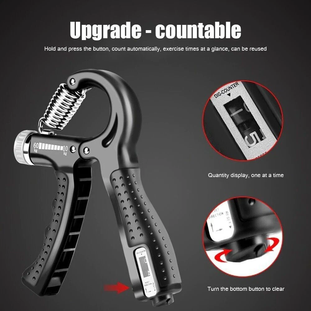 Created with Eselt - eBay Templates US Seller ,FAST N SHIPPING Created with Eselt - eBay Templates Created with Eselt - eBay Templates Hand Grip Strength Power Trainer Gripper Strengthener Adjustable Gym Exerciser Hand Grip Strength Power Trainer Gripper Strengthener Adjustable Gym Exerciser Adjustable R-Shaped Spring Hand Gripper Countable Hand Strength Exercise Grip Fitness Sports Finger Rehabilitation Training Device Feature: 1. The dial can easily adjust the resistance of 22-132LB (10-60kg), and the gear can be increased or decreased freely. 2. The built-in mechanical counter records the complete grip strength and resets easily, easily calculates your daily exercise volume, and quickly raises your strength to a higher level. 3. The non-slip handle and high-quality stainless steel spring make the clip very comfortable to use. Specification: Name: Adjustable Spring Gripper Material: Plastic + High Elastic Spring Steel Weight: 135g Size: 16.5*10cm Color: Black, Gray, Blue, Orange Function: Exercise Finger And Hand Strength Note: Due to the different monitor and light effect, the actual color of the item might be slightly different from the color showed on the pictures. Thank you! Please allow about 1-2cm measuring deviation due to manual measurement. Created with Eselt - eBay Templates Payment Special financing available Select PayPal Credit at checkout to have the option to pay over time. Qualifying purchases could enjoy No Interest if paid in full in 6 months on purchases of $99 or more. Other offers may also be available. Interest will be charged to your account from the purchase date if the balance is not paid in full within 6 months. Minimum monthly payments are required. Subject to credit approval. See terms- for PayPal Credit, opens in a new window or tab The PayPal Credit account is issued by Synchrony Bank. Shipping Special financing available Select PayPal Credit at checkout to have the option to pay over time. Qualifying purchases could enjoy No Interest if paid in full in 6 months on purchases of $99 or more. Other offers may also be available. Interest will be charged to your account from the purchase date if the balance is not paid in full within 6 months. Minimum monthly payments are required. Subject to credit approval. See terms- for PayPal Credit, opens in a new window or tab The PayPal Credit account is issued by Synchrony Bank. Returns We offer a 30 day return policy on all items purchased from us. Please contact us within 30 days after receipt of the item for a return. Please Do not ship the item back to us without contacting us first. Created with Eselt - eBay Templates On Feb 18, 2024 at 18:55:32 PST, seller added the following information: