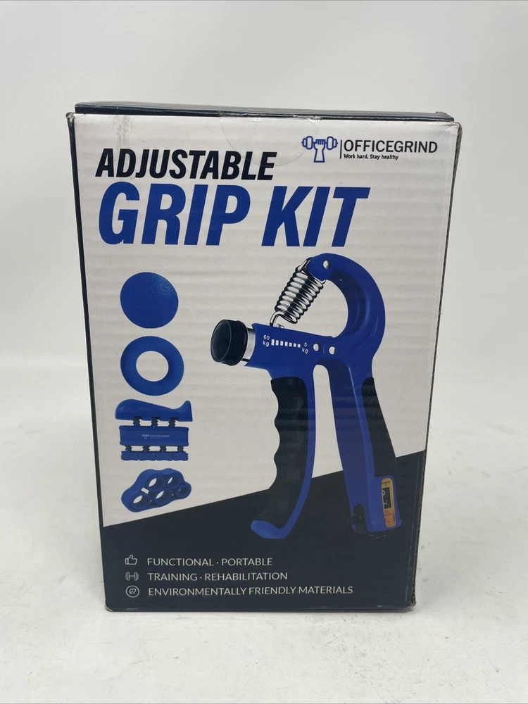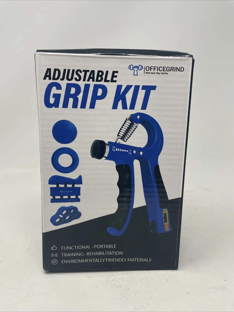 This Hand Grip Strengthener Trainer Kit is designed to help you improve the strength of your hands and forearms. It includes a Finger Excerciser, Finger Stretcher, Adjustable Grip, Grip Ring, Grip Ball, and a Portable Drawstring Bag. The kit is made of plastic and rubber materials and comes in a blue color. With multiple exercises, ergonomic design, non-slip surface, and anti-sweat feature, this kit is perfect for gym and training activities. It also has a repetition tracker, is portable, and has a versatile use. This kit is suitable for both men and women and is manufactured in China.