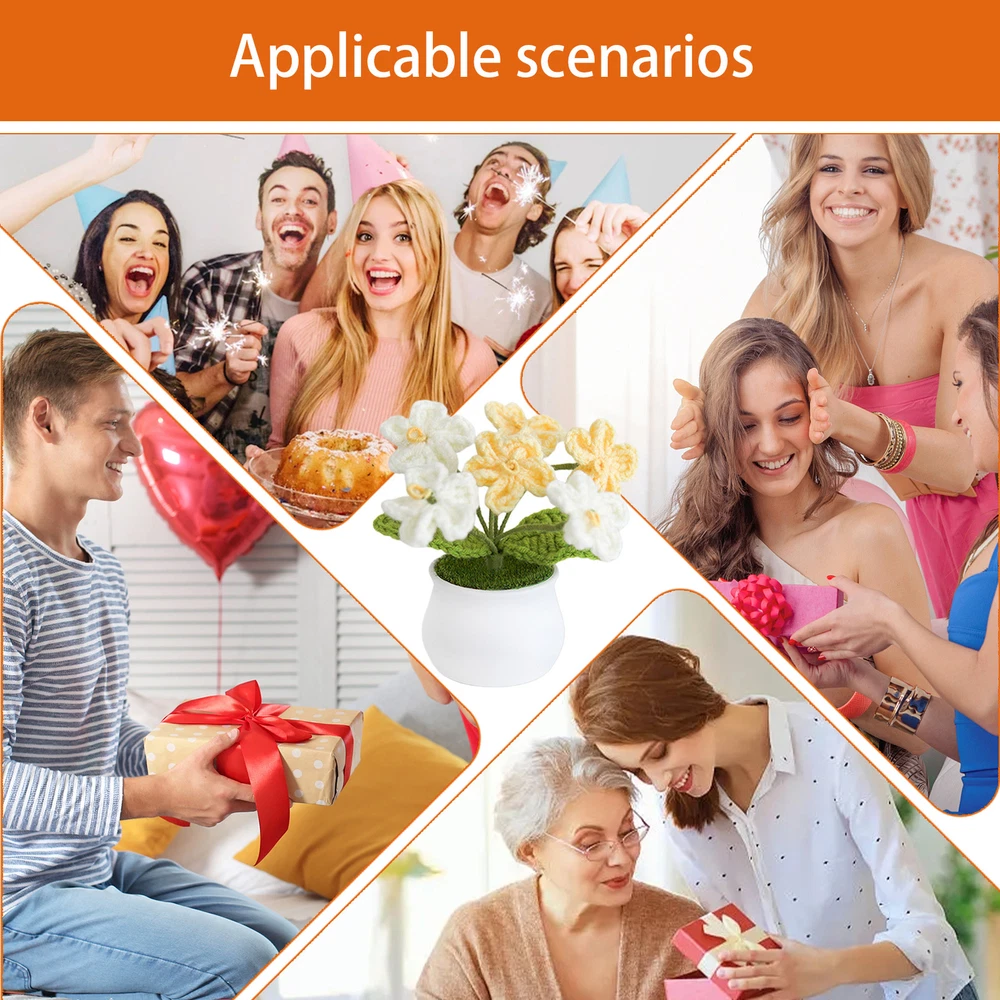 Hand Knitted Potted Plants Crochet Flower Bouquet Home Desk Decor Ornament Bullet Points: Infuse Liveliness: The Crochet Flower Bouquet is made of wool material, with good simulation and bright colors that add an authentic touch to any space. Elevate your home decor with this unique piece that breathes life into any room. Inspiring Choice: Our Crochet Flower Bouquet features a unique hand weaving process and creative design that adds a touch of uniqueness to any home. The perfect choice for inspiring creativity and enhancing your home decor. Work Well for You: Every flower is carefully crafted, resulting in a stunningly beautiful crochet bouquet that will never wilt or fade away. Reusable, this handmade art is as close to real flowers as it gets. Multi Functions: Handcrafted with care, this Crochet Flower Bouquet serves as a versatile home decoration, enhancing any event center with its timeless charm and seamlessly blending with both modern and traditional aesthetics for various occasions. Ideal for Gift Giving: Give the gift of eternal affection with this meticulously handcrafted Crochet Flower Bouquet, perfect for any occasion that calls for an expression of love and appreciation. This Crochet Flower Bouquet features a high degree of simulation, inspiring your decorating with its natural beauty that's no different from real flowers. Perfect for use in various occasions, such as birthdays and more! Add a touch of elegance and charm to your space with this exquisite bouquet. Specification: Style: A-puff flower pink, B-3 lily of the valley yellow, C-forget-me-not-gradient yellow, D-sunflower, E-5 lily of the valley white Product Size: A:about 10x13.5cm/3.94x5.31 inches B:about 10x11cm/3.94x4.33 inches C:about 10x11cm/3.94x4.33 inches D:about 8x14cm/3.15x5.51 inches E:about 10x11cm/3.94x4.33 inches Packing List: 1* Flowers Artificial for Decoration 1.You can make a Credit payment via Paypal.Paypal will let you use MasterCard,Visa to pay. 2.Payment should be completed within 5 days after auction closed, or unpaid dispute will be filed for an closing auction.An unpaid case will be filled after 4 days. ● We strive for 100% customer satisfaction ! ● Positive Feedback is very important to us. ● We hope that you contact us immediately BEFORE you give us neutral or negative feedback, so that we can satisfactorily address your concerns. ● We promise to offer the lowest price and high quality produce. Dear buyers : ● Welcome to my store ! ● Your satisfaction is our top goal,we appreciate your patronizing. ● If you have any questions, please contact us before leave negative or neutral feedback, we will try our best to solve the issue to your satisfaction, thanks ! ● If you are satisfied with our service, please rate the details of the transaction (Detailed Seller Ratings) on eBay. ● Please always talk to us via ebay Message. ● We appreciate your business and look forward to growing our e-Bay sales with satisfied customers.