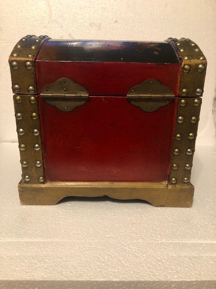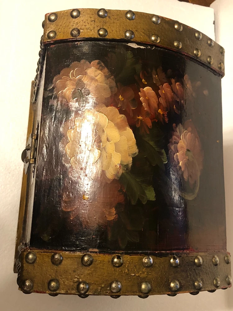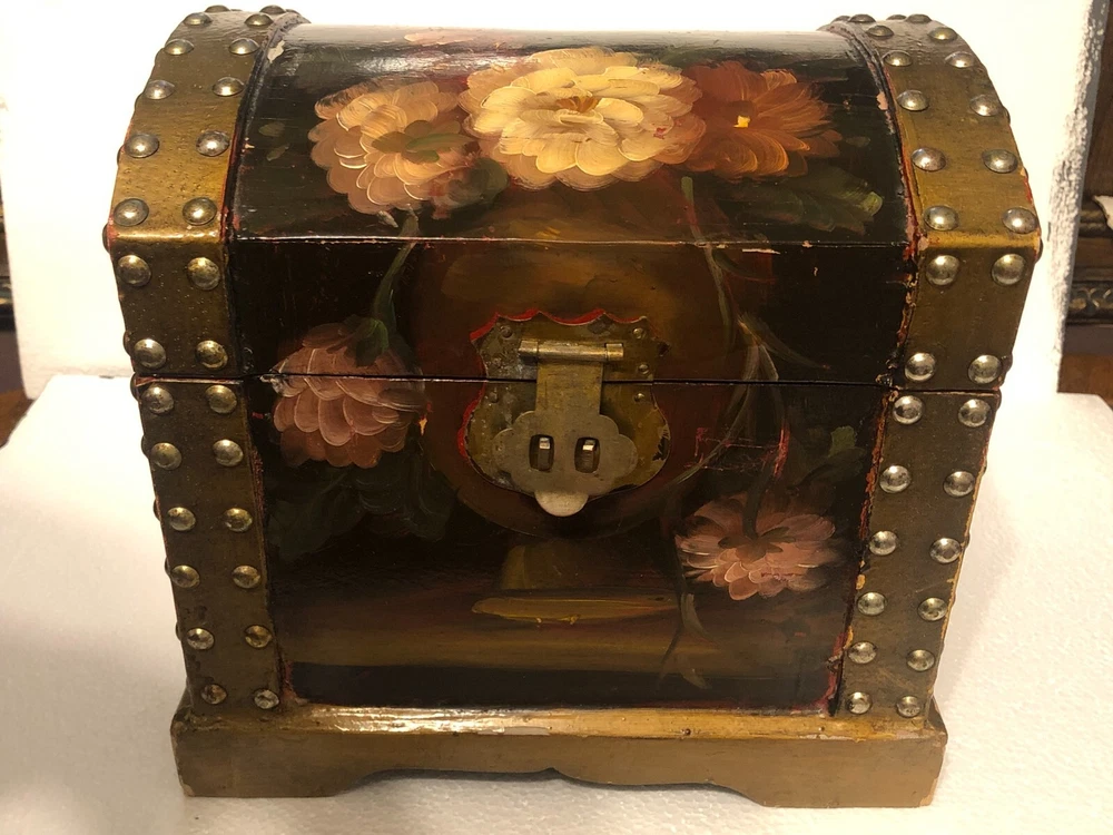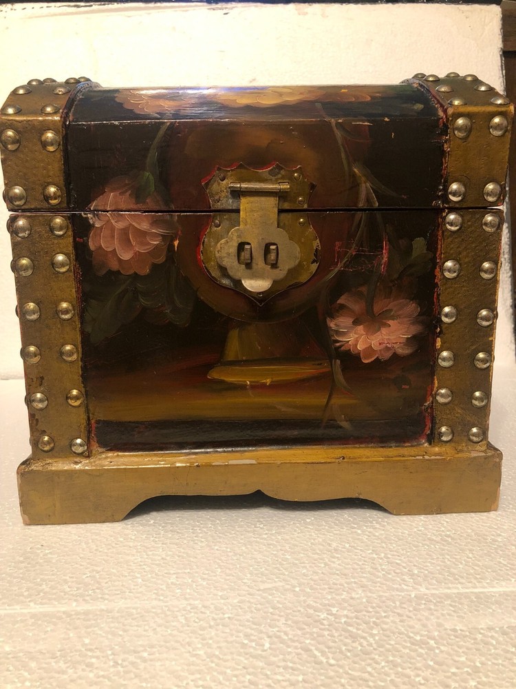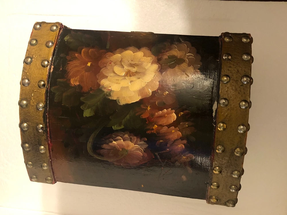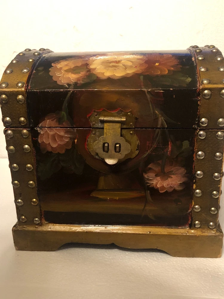 Small Wooden Chest Hand Painted Floral Design Height: 9” Length: 10” Depth: 7.5” Small scratches - See pictures