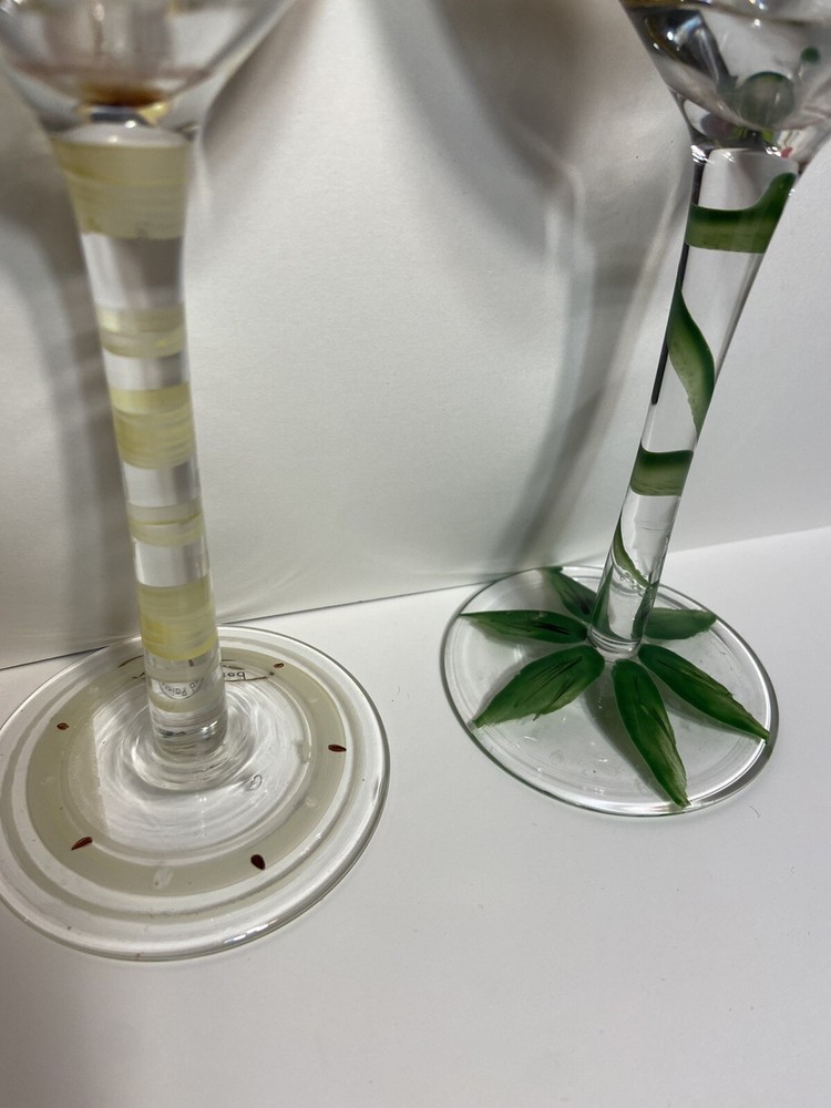 Hand Blown Martini Glass Cocktail Black Smoke Gray (lavender)Swirls Set of 6