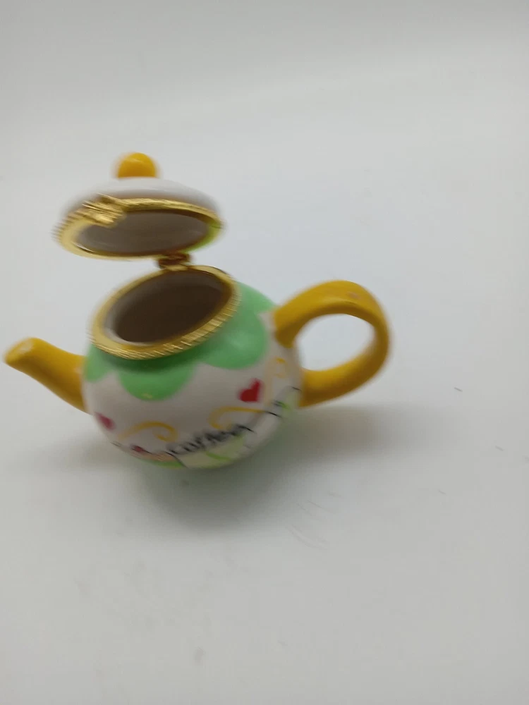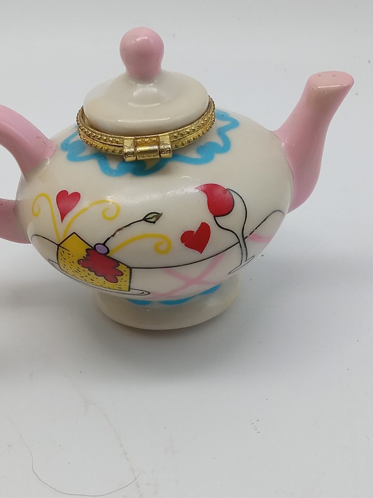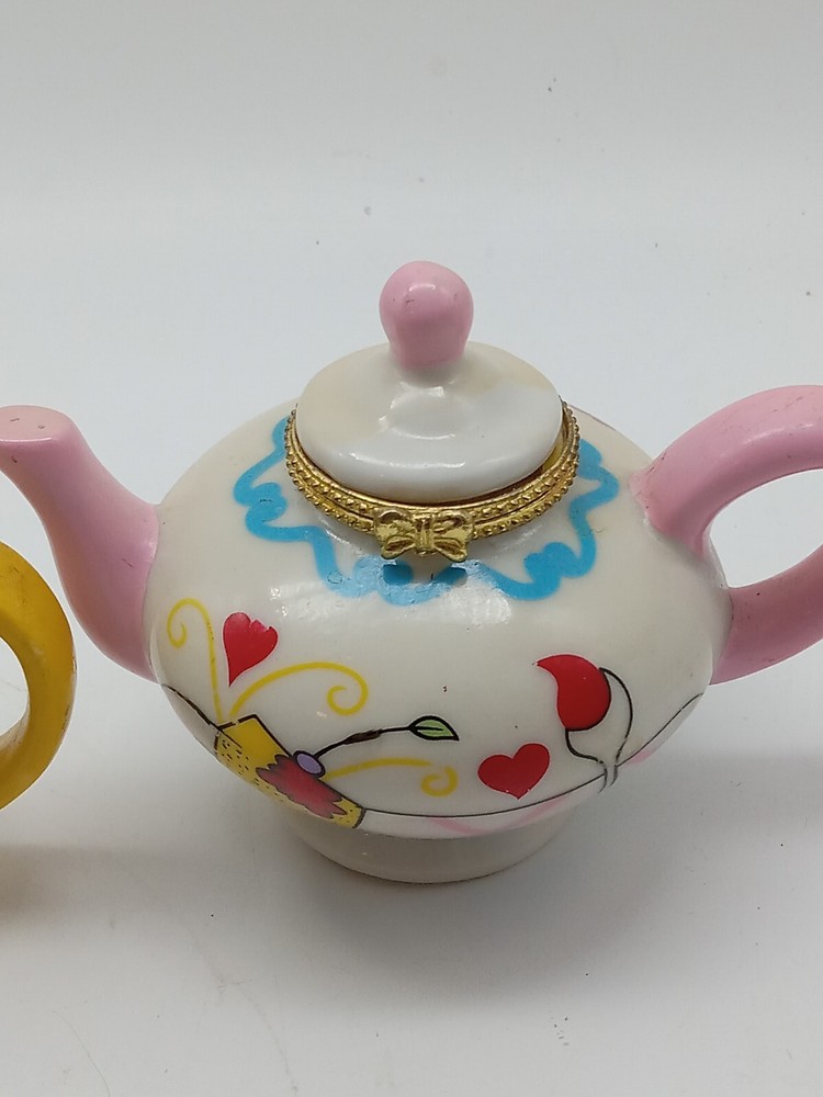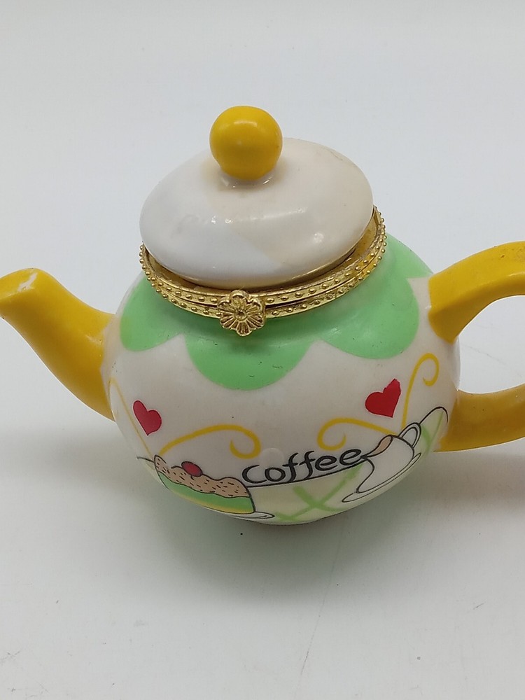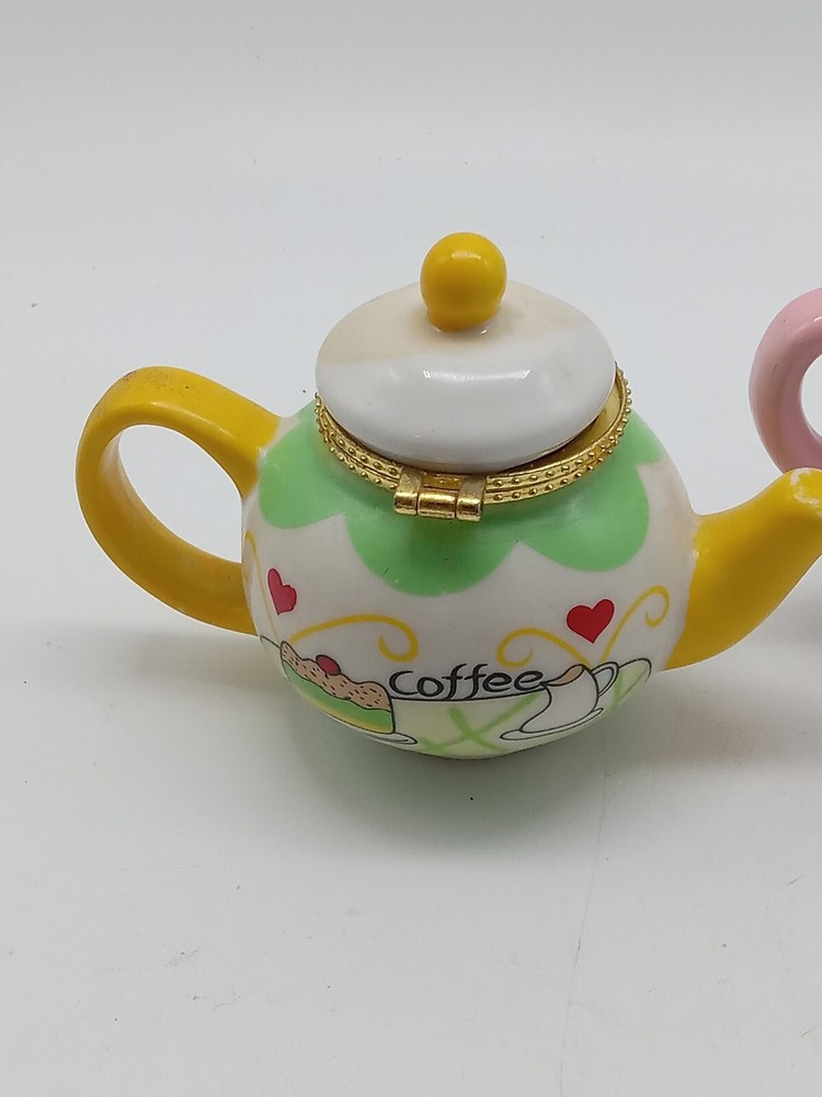 Hand Painted Gold Clasp Tea Coffee Pot Trinket Boxes 2-3.25 Inch Unbranded
