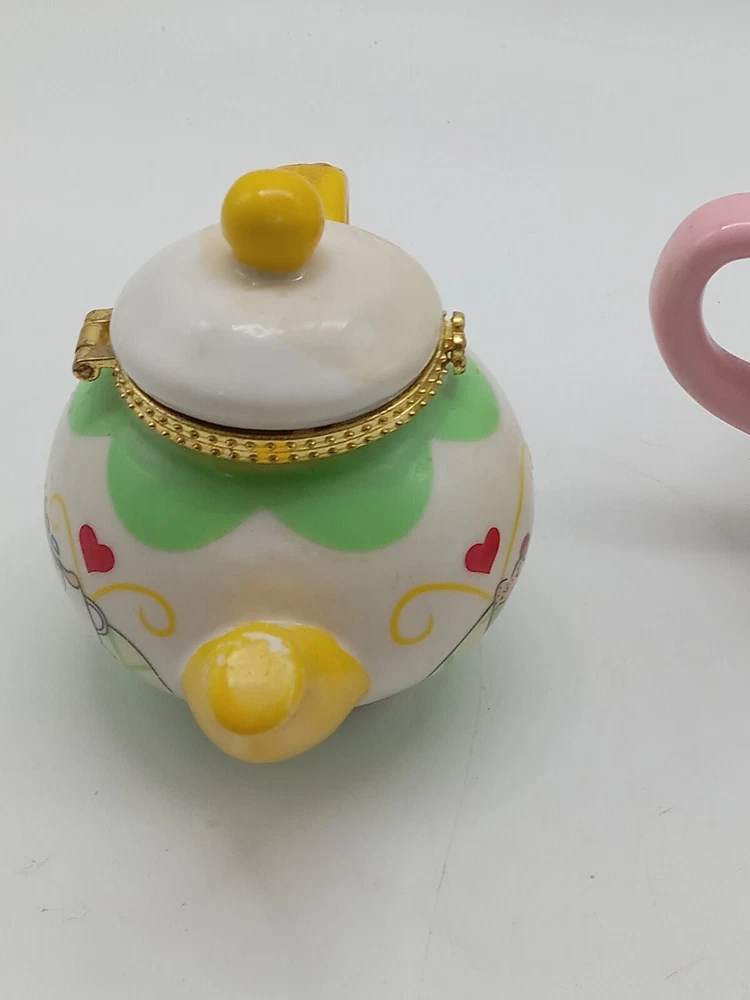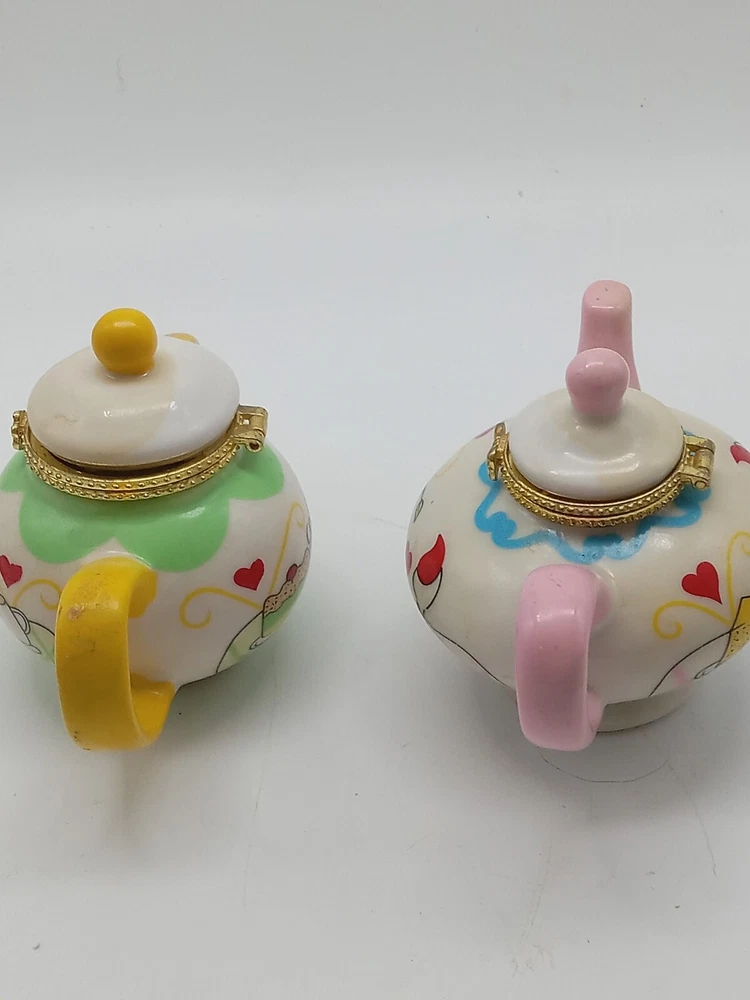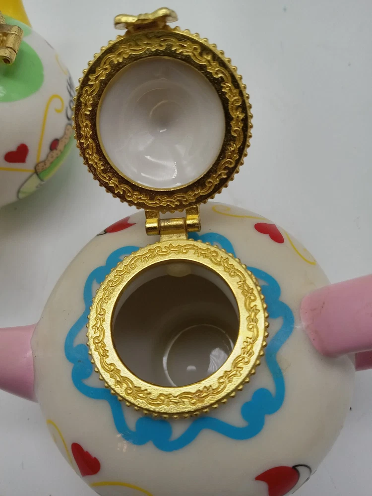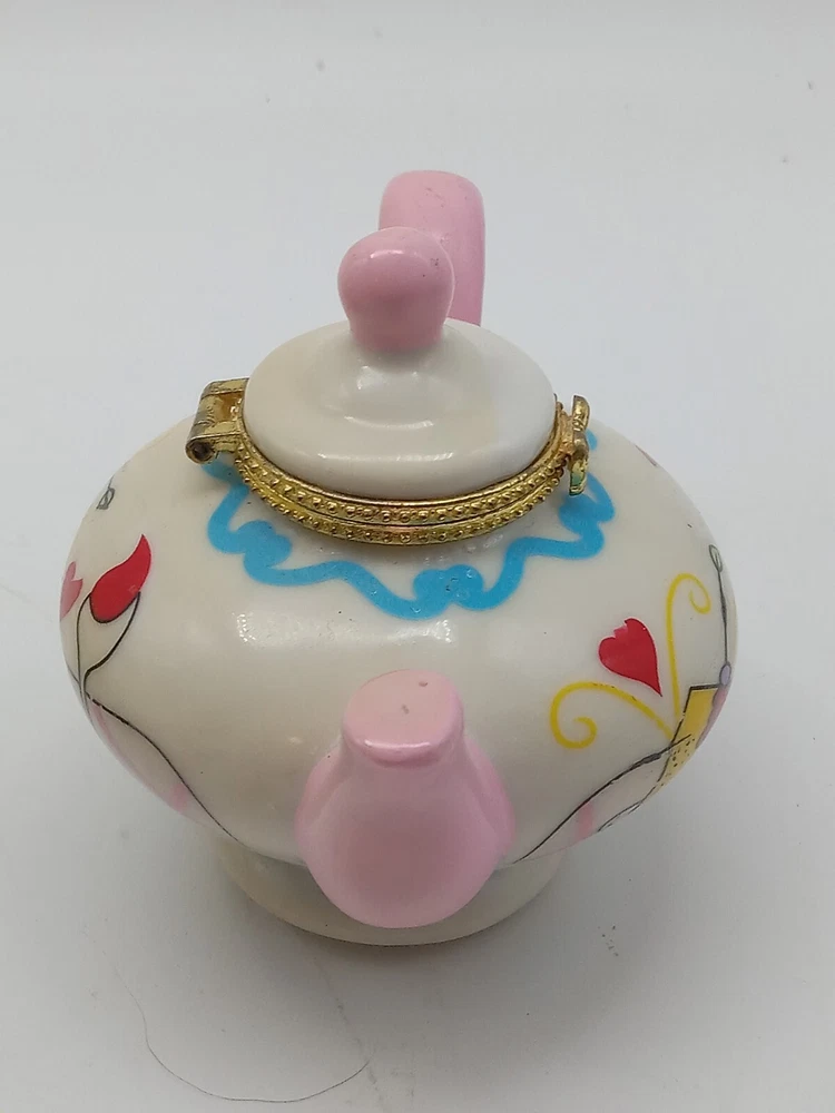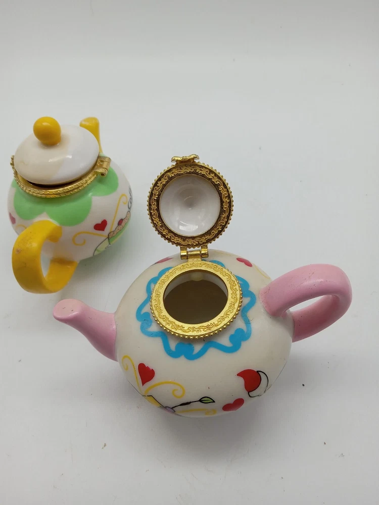 Hand Painted Gold Clasp Tea Coffee Pot Trinket Boxes 2-3.25 Inch Unbranded