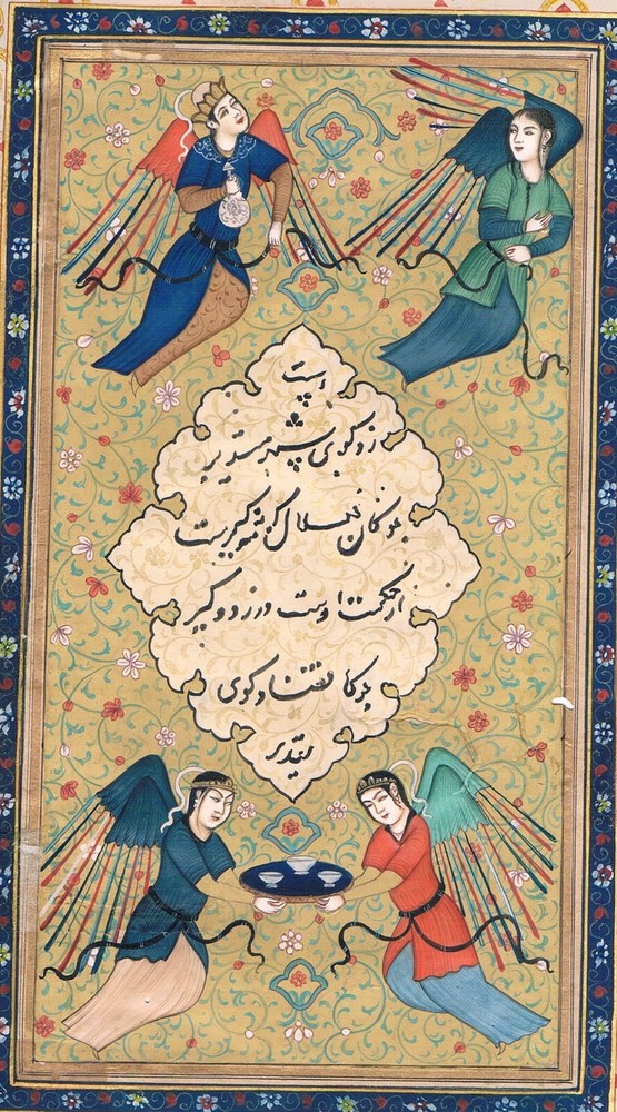 Hand Painted Persian Painting Angels & Islamic Calligraphy Art 6x9 Inches Hand-painted Persian paintings often depict angels and incorporate Islamic calligraphy, showcasing traditional artistry and cultural themes. One example is a piece adapted from a 16th-century Persian illuminated manuscript, which features an angel messenger and uses traditional painting techniques. SHIPPING We will dispatch your order as per our handling time. NOTE :: This product does not include any import duty, Buyer will be responsible for the same in their respective country. Have a nice day