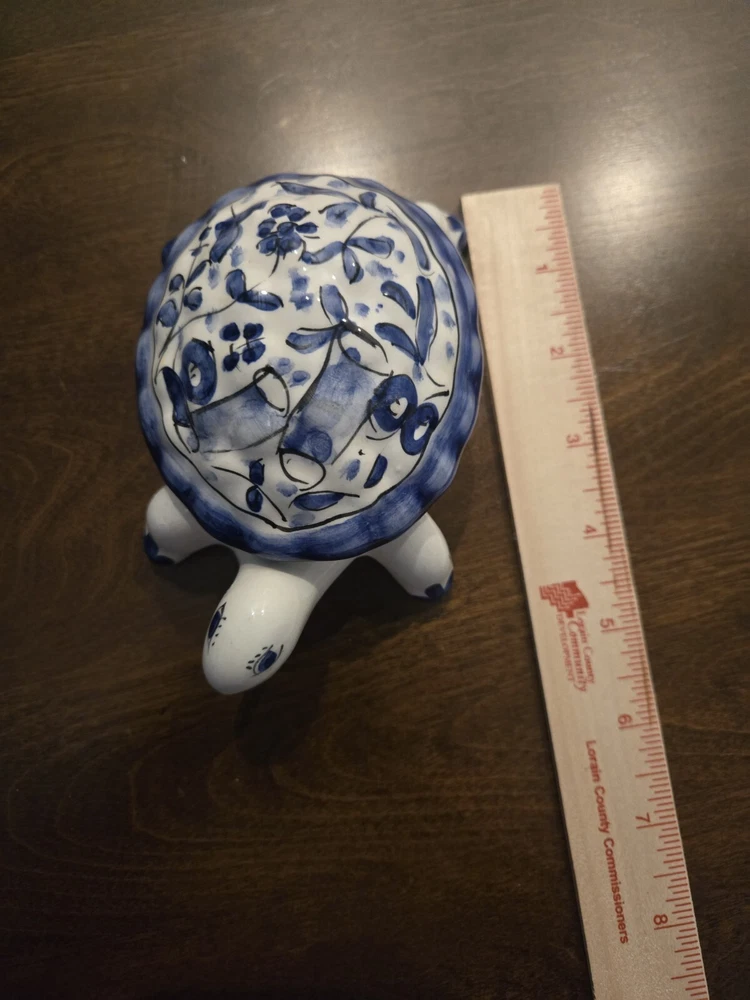 This beautiful trinket box is a true work of art. Crafted in Portugal from high-quality porcelain, it features a delightful hand-painted turtle design. The box is perfect for storing small treasures and trinkets, and will add a touch of elegance to any room. The intricate details of the turtle design make this box a true collector's item. Whether you're a fan of boxing or simply appreciate beautiful decorative pieces, this trinket box is sure to impress. Add it to your collection today and enjoy the beauty and functionality of this exquisite piece.