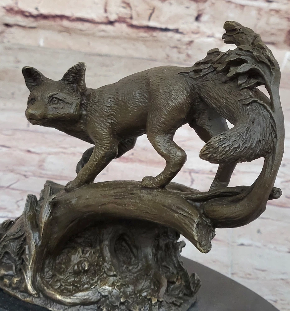 SIGNED HAND MADE LOST WAX FOX BRONZE SCULPTURE FIGURINE CABIN DECOR WILDLIFE NR SIGNED HAND MADE LOST WAX FOX BRONZE SCULPTURE FIGURINE CABIN DECOR WILDLIFE NR Condition : This sculpture is in perfect condition. Bronze Dimensions with Marble Base: Height 7.5" X Width 9.5" Marble Dimensions: Diameter 8.5" Height without base:9.5" Weight:9 LBS Inventory:64AL3705746 This captivating bronze sculpture features a fox, beautifully crafted with meticulous attention to detail and realism. The mystical hunter is depicted in a stand of trees, offering a touch of the wild and a sense of drama to any space. Whether placed near an entryway, as part of a home gallery, or in proximity to a fireplace, this artwork brings a unique charm that is both irresistible and enchanting. Crafted using the lost-wax method, a technique known for its precision and ability to capture intricate details, the sculpture showcases the artist's dedication to portraying the essence of this cunning creature. The antique brown patina finish adds a timeless quality, enhancing the overall aesthetic and giving the sculpture a sense of antiquity. This fox sculpture, reminiscent of rare collectibles, is more than just a decorative piece—it's a statement of artistry and a celebration of the natural world. Signed by the artist S. Beatuce, this handcrafted bronze masterpiece invites admiration for its craftsmanship and the unique character it brings to any environment. Signed S.Beatuce Fox Wild Animal Bronze Statue Figure Sculpture Figurine Art Video will open in a new window Using the eBay App? Paste link into a browser window: [isdntekvideo] Shipping Terms : Most of our items are shipped via USPS (United States Postal Service) mail or UPS. Most orders are shipped within 24-48 hours of purchase. Please be aware that not all items are available for USPS shipping due to size and weight. We do ship to Hawaii, Alaska, Canada, Puerto Rico, APO/AE, and U.S. Virgin Islands, however, an additional charge may be required. Please contact us before making any purchases in these areas. For Non-USA customers, you may be responsible for all duty, tax, brokerage fees that may be due upon delivery (shipping costs cover freight charges only). We also ship internationally. Please refer to the "Shipping and Handling" chart for the rates for each area. Payment : We accept just about any form of payment. PayPal, Master Card, Visa or American Express credit cards. Money orders, cashiers checks, and even personal or business checks. For governmental institutions, we will also accept a purchase order. Please understand that for personal or business checks we have to wait for the check to clear (usually 7 days) before shipping. Condition : New Detailed Hand Crafted Hot Cast Bronze Satisfaction Guaranteed. This is Stock Photo, Slight Color Variation!! Listing and template services provided by inkFrog
