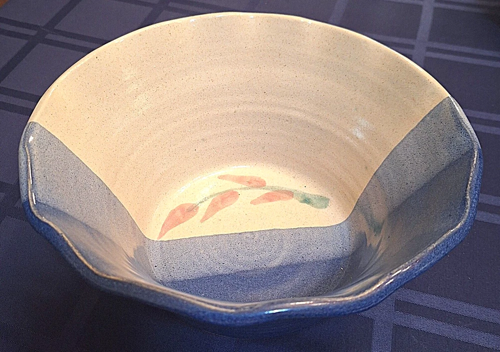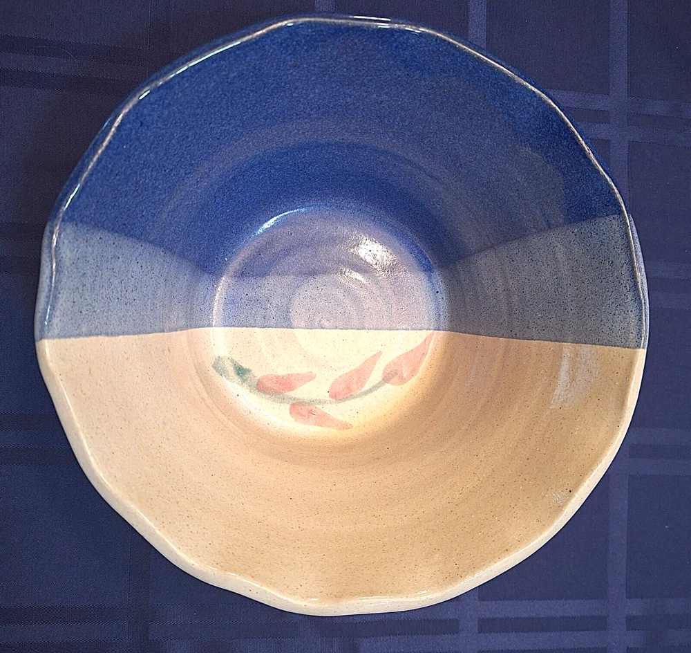 Crafted with care, this artisanal bowl is a testament to the timeless allure of handcrafted pottery. With its unique speckled glaze in soothing shades of blue and beige, this stoneware piece brings a touch of Americana to any setting. Its round shape, wavy edge, 10 inch diameter, and 4.5-inch height make it a versatile choice for both everyday use and special occasions. The bowl's glossy finish and hand-painted backstamp attest to its authenticity as a product of the 1990s, an era celebrated for its rich art pottery tradition. Decorative yet functional, this bowl is a perfect complement to a range of interior styles, from rustic to refined. Carefully hand wash only to maintain its beauty. In Excellent Vintage condition. No chips or cracks. Preowned. Please see photos. Disclaimer : Many of the items I sell are vintage, antique or used, and may not be in perfect condition. They may have age-related wear, imperfections or a minor chip here and there. You may also see air bubbles in crystal items, which are naturally occurring. I will point out any and all of these to the best of my ability. Please review the photos provided carefully, read the description, and judge accordingly. All items are insured for the purchase price in case of damage due to shipping, so please do not throw away any of the original packing materials, the shipping box, or the broken item as these will have to be returned to Memory Lane Treasure in order to file an insurance claim for reimbursement of the item. The buyer is responsible for return shipping costs and reimbursement to the Buyer will not take place until the Seller has received all of the above. Please feel free to contact me with any and all questions you may have before purchasing an item—I am happy to assist. Thank you for visiting Memory Lane Treasure! Shipping and Handling : The misnomer regarding Shipping is that the amount charged only covers what it costs to ship an item by its weight. Shipping covers more than just the weight of an item, it also includes logistics costs such as packing supplies, inventory storage, transportation, and delivery. Due to the rising costs in our economy, Memory Lane Treasure has had to start charging for shipping; however, to keep the total cost as low as possible for our customers, Memory Lane Treasure has not yet started to charge a Handling fee, which is the cost of labor. Also note, that depending on the destination of the purchased item, eBay may calculate a different Shipping from what was listed by Memory Lane Treasure. Should that occur, it is not something done by our facility and Memory Lane Treasure should not be held responsible. 100% Customer Satisfaction is Memory Lane Treasure’s ultimate standard. Should a customer have any questions or concerns, they are always encouraged to contact Memory Lane Treasure before purchasing an item—I am happy to assist.