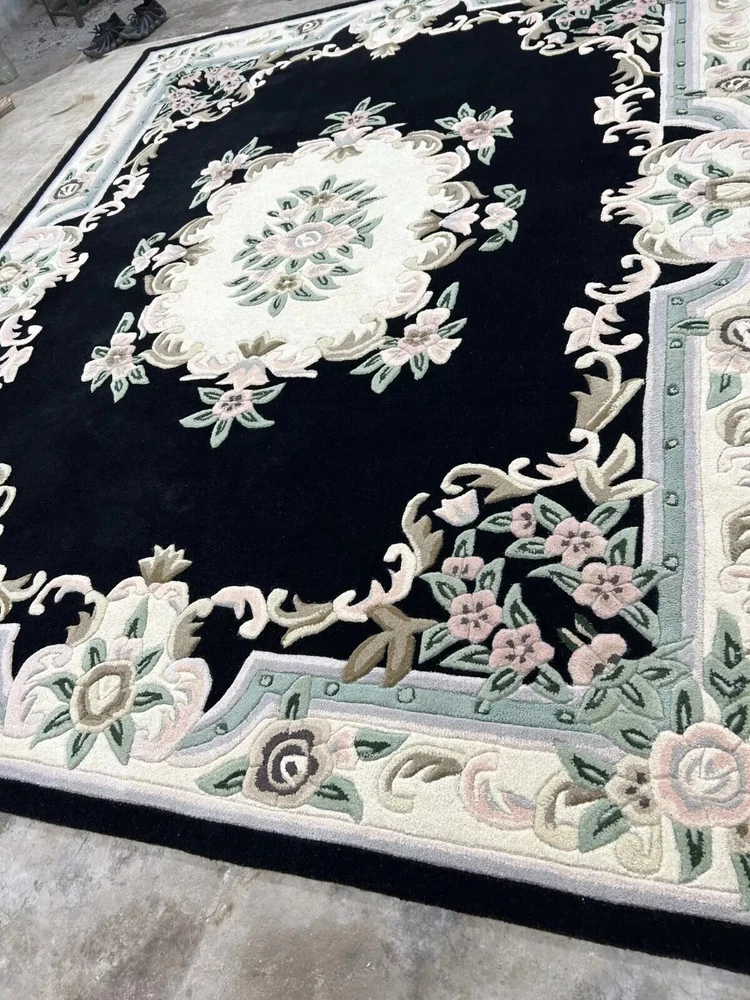 Hand Tufted Aubusson Design Rug Banded Wool Carpet area rug 8x10 9x12 6x9 5x8.