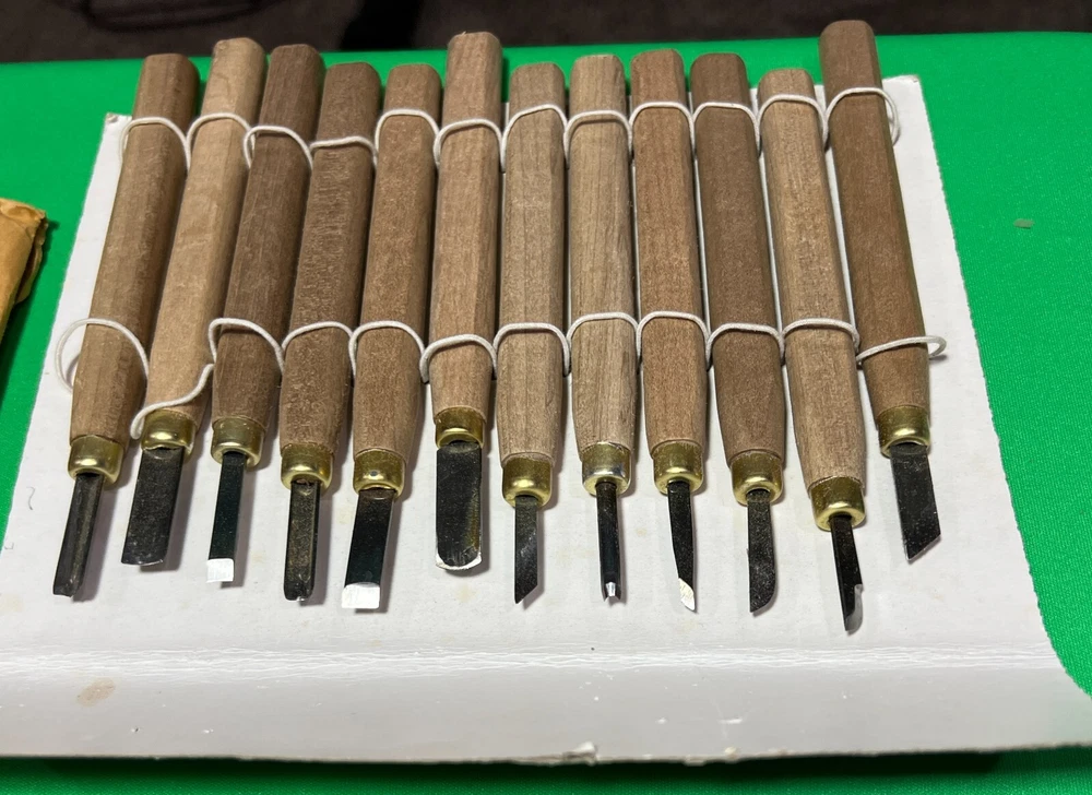 Hand Wood Chisel Set Carving Kit – 12 Piece Professional Beginner’s Woodworking Tools For sale is a 12-piece Hand Wood Chisel Set , perfect for both professionals and beginners. This comprehensive carving kit includes: 12 High-Quality Chisels for various shaping and carving tasks. Multi-Tool with Interchangeable Blades to give you flexibility in your projects. Extra Shaping and Cutting Blades to extend the range of your creations. 2 Pattern Blocks to assist with precise carving and designs. The set has been very lightly used and is in excellent condition. Ideal for anyone looking to expand their woodworking toolkit!