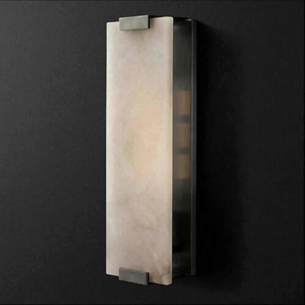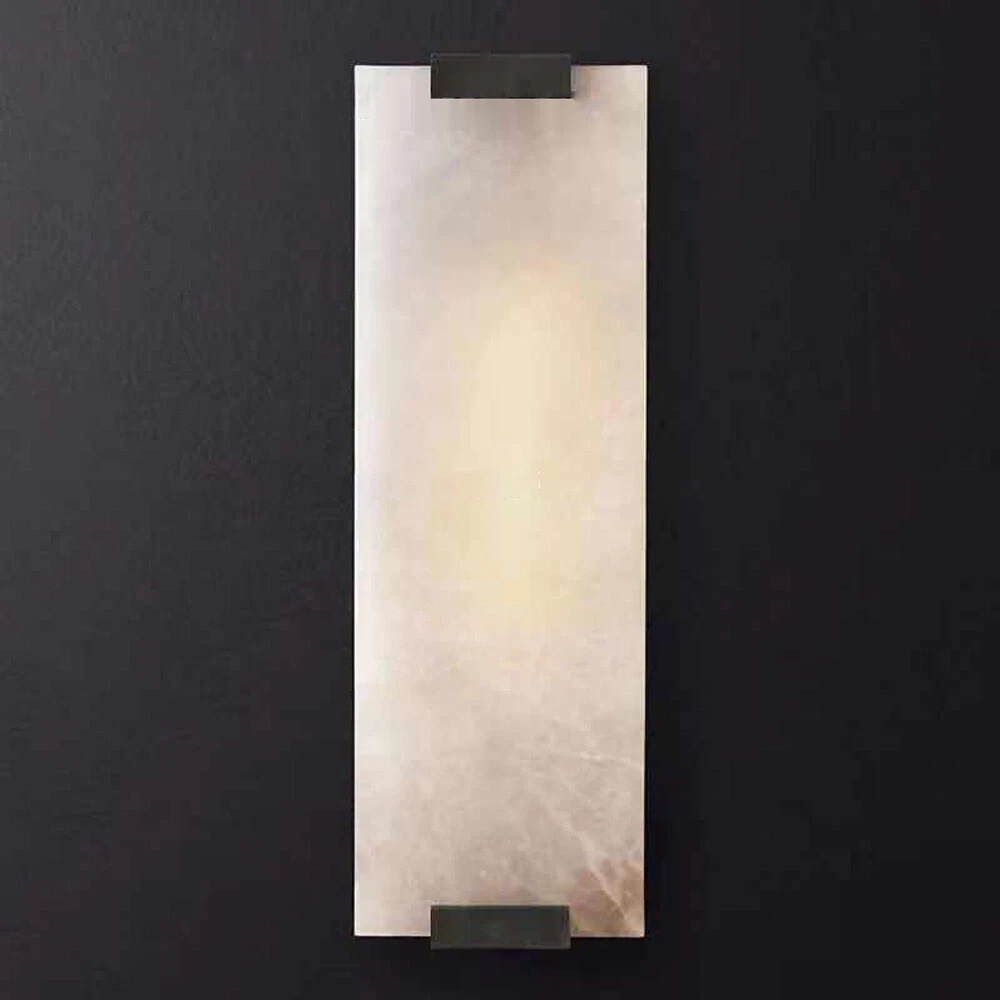 Hand-Carved Rectangular Alabaster Wall Sconce Light Fixture