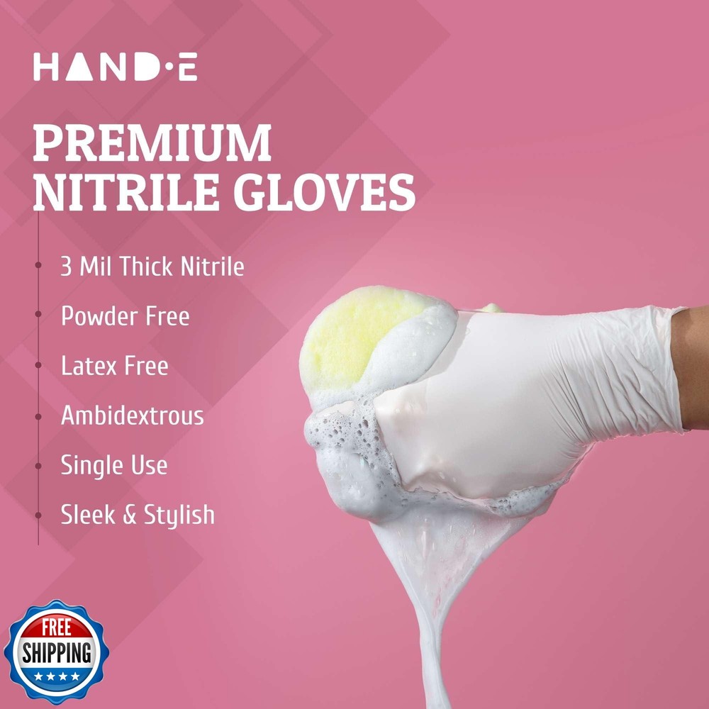Hand-E Touch White Nitrile Disposable Gloves X-Large, 200 Count - Food Prep, Salon, Hair Dye, Esthetician, Kitchen - Powder and Latex Free Rubber Gloves Features Food Gloves: These food prep gloves are three mils thick, highly stretchable, and won't rip or tear easily. Nitrile food grade gloves are better than plastic, vinyl, or latex. Nitrile Gloves XL: These food service gloves' fingers have textured tips for a more tactile grip, and the thickness offers the best comfort out of a disposable glove! Multipurpose: Hand-E's white food gloves disposable are ideal for health & household. They are the best cleaning and cooking gloves as they are food safe. Use also as barber and nail tech gloves. Powder & Latex Free: Perfect for people with latex allergies, these white nitrile gloves are great non-sterile gloves for use without risking allergic reactions. Hand-E: Not only are our gloves a prestine white, but Hand-E boxes also have an elegant design you'll love to leave on your kitchen counter, office desk, or workstation. Available in 50, 100, and 200 packs and in black, pink, and blue. Shipping Free & Fast Shipping: We offer free shipping to most of the USA with a normal delivery time of 3-7 days. However, due to the current situation, additional delivery time (up to 3 weeks) may be required for some items. Alternative Carriers: We may use alternative carriers (e.g., USPS, FedEx, UPS) to ensure your package arrives safely and on time. Due to the use of multiple carriers, we are unable to provide a tracking number automatically. Handling Time: Orders are processed and shipped within 1-2 business days of receiving cleared payment. Shipping Restrictions: Shipping to Alaska, Hawaii, Puerto Rico, Guam, and other US territories may incur shipping charges or delivery restrictions. Please contact us before ordering, or your order can be refunded/cancelled. State Restrictions: Certain items may not be shipped to California due to state regulations. Contact for Tracking Updates: If you require tracking updates or have any concerns about the delivery of your order, please feel free to contact us, and we will be happy to assist you. Return Policy 30-Day Hassle-Free Returns: If you are not completely satisfied with your purchase, you can return the item for free within 30 days of receiving it for a full refund or exchange. Easy Return Process: Contact us, and we will provide you with a prepaid return shipping label and detailed instructions. No Restocking Fee: There are no restocking fees for returns. However, the buyer is responsible for return shipping costs if the return is not due to a seller"s error. Refund Processing: Refunds will be processed within 1 business day of receiving the returned item in its original condition. Feedback Your feedback is extremely important to us. We strive to provide the best products and customer service possible. If you are satisfied with your purchase, please take a moment to leave us a positive review. If you have any concerns or issues with your order, please contact us before leaving negative feedback. We are committed to resolving any problems and ensuring your satisfaction. Contact Us If you have any questions or concerns, please feel free to reach out to our customer support team. You can contact us through the eBay messaging system. We are available Monday to Friday, 9:00 am to 5:00 pm EST, and we will do our best to respond to your inquiry within 24 hours. Thank you for supporting our small family business!